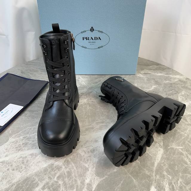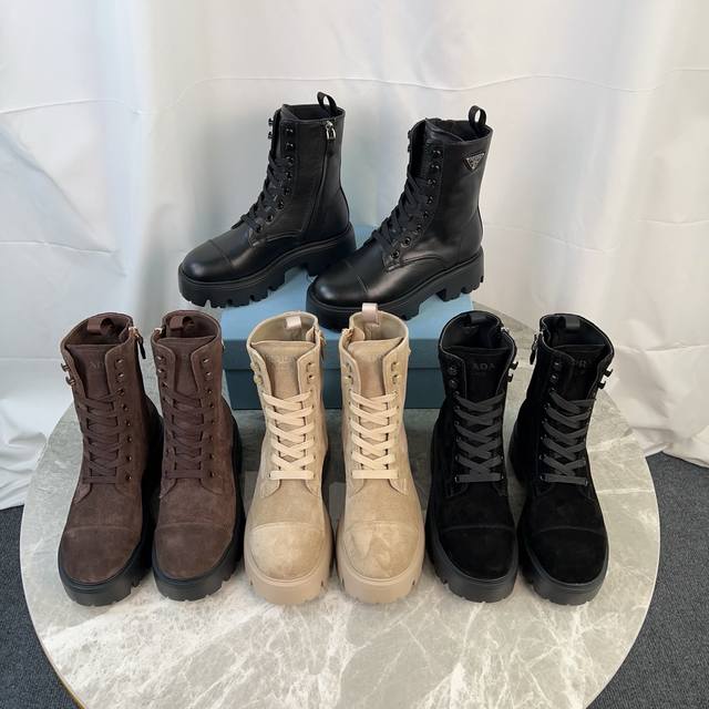 model. Outer: Imported full-grain cowhide, high-gloss suede. Lining: Imported calfskin. Pad: Imported calfskin. Sole: Original craftsmanship, 6cm thick sole. Features the iconic triangle logo and original packaging. Size: 35-42. 41.42 custom sizes available.