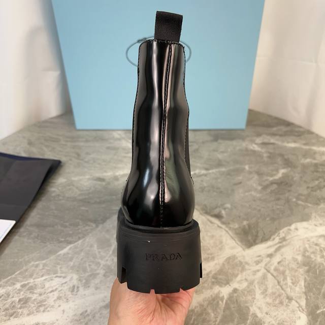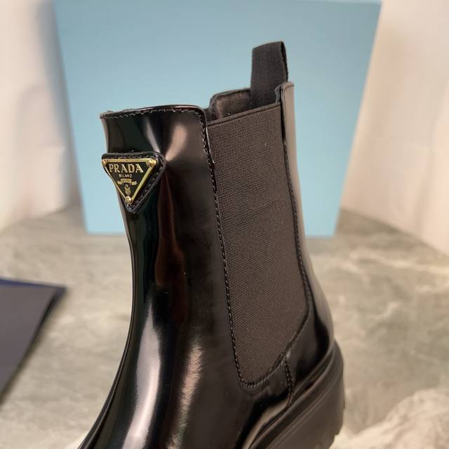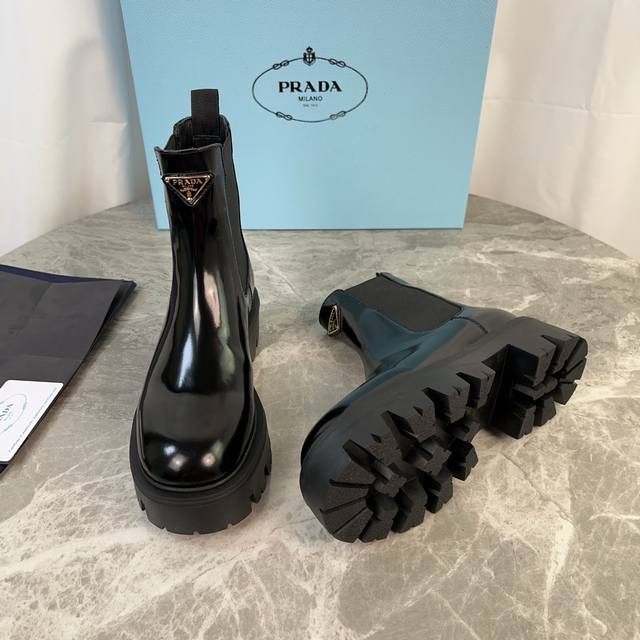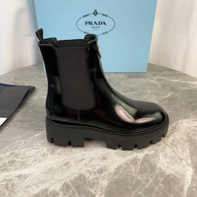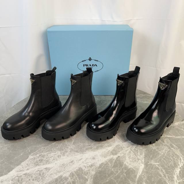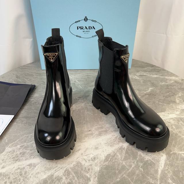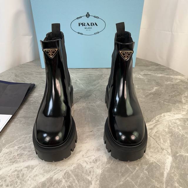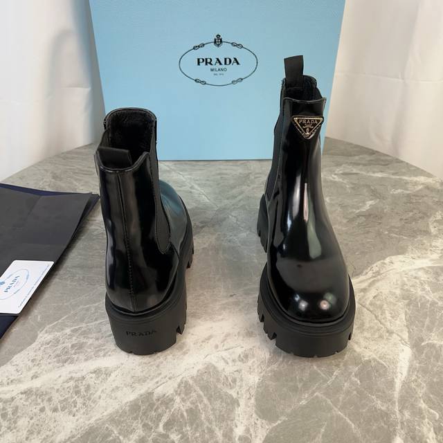 model. Upper: Imported split-edge beads, calfskin. Lining: Imported mixed sheepskin. Pad: Mixed sheepskin. Sole: Original craftsmanship, 6cm thick sole. Features the iconic triangle logo and original packaging. Size: 35-41. 40.41 Custom sizes available.