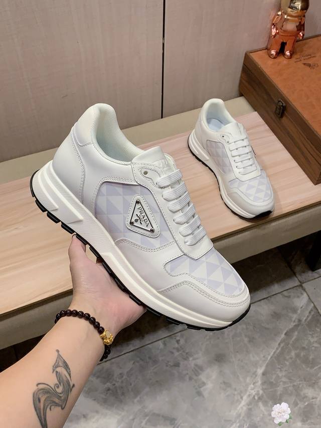 New Arrival: Factory direct Prada* latest hot-selling casual shoes, top-tier luxury brand~ top-quality through personal shopper. The upper is made of imported breathable cowhide combined with breathable sheepskin insole and exquisite workmanship. Original design, stylish and soft rubber outsole, wear-resistant and non-slip, lightweight and comfortable on the foot. Actual product photos show even better! 085: Sizes: 38-44, Black and White available on