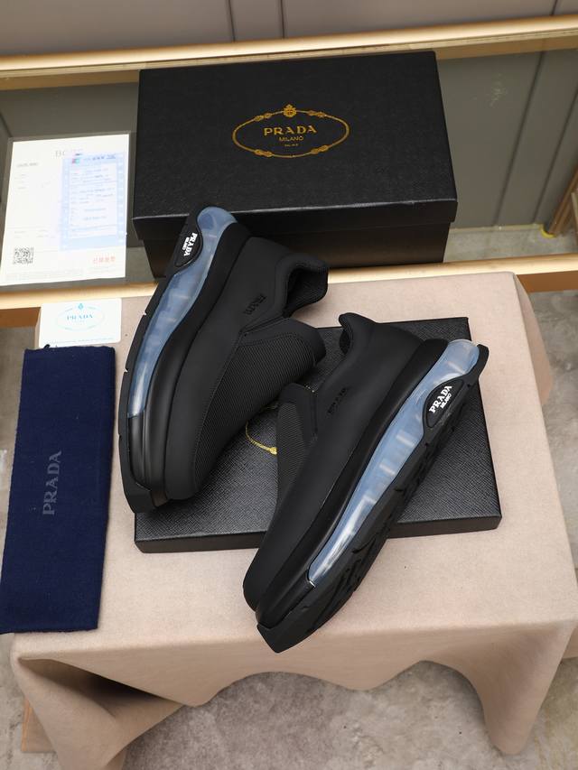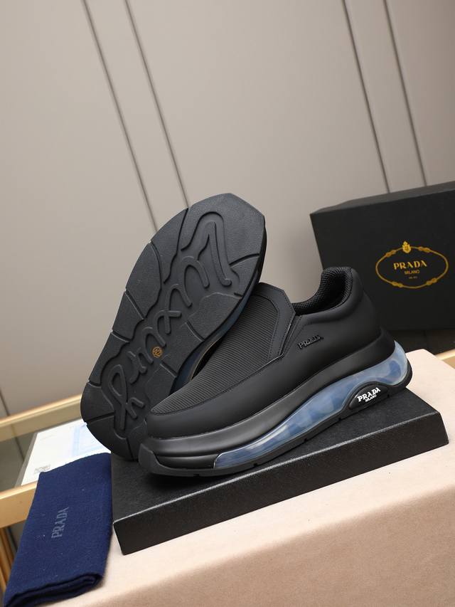 p Prada men's casual shoes, made of imported cowhide upper and lambskin lining, original air cushion sole, rubber sewing process, rubber bottom padding, excellent shock absorption effect, comfortable to wear!