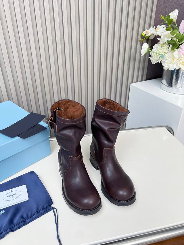 prad* 25Ss Prada Retro Martin Boots, Rider Boots, Fashionable Motorcycle Martin Boots, Easy to Ride, Versatile and Classic Last, Enough to Conquer Your Style, Small Height Increase, Casual and Perfect for Both Wear and Wear. Made with imported environmentally friendly vegetable-tanned cowhide leather. Lined with cowhide. TPU rubber for non-slip and lightweight. 1:1 sole. Outsole height 4cm. Standard sizes: 35-41. Available in 2 colors.