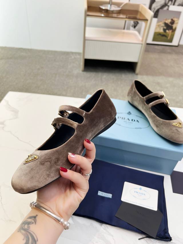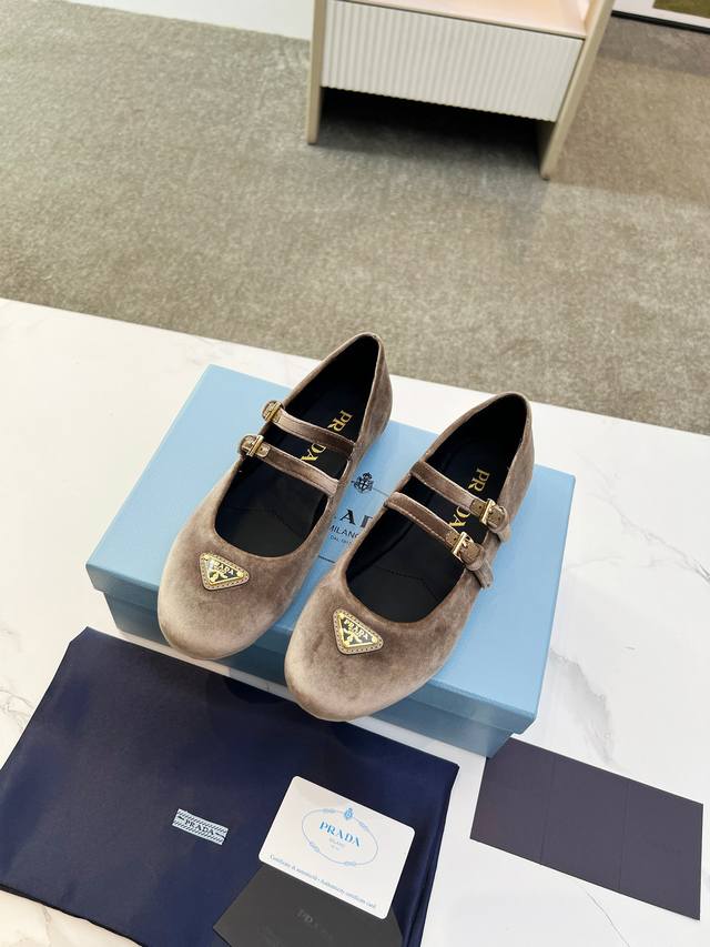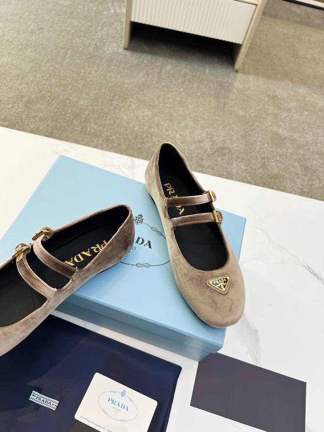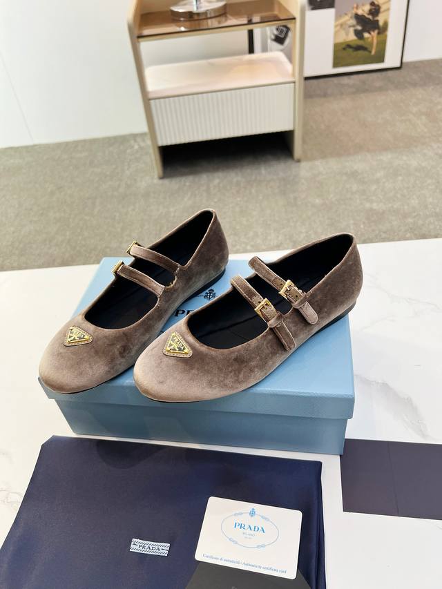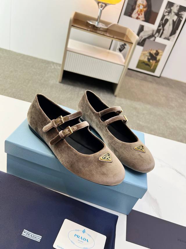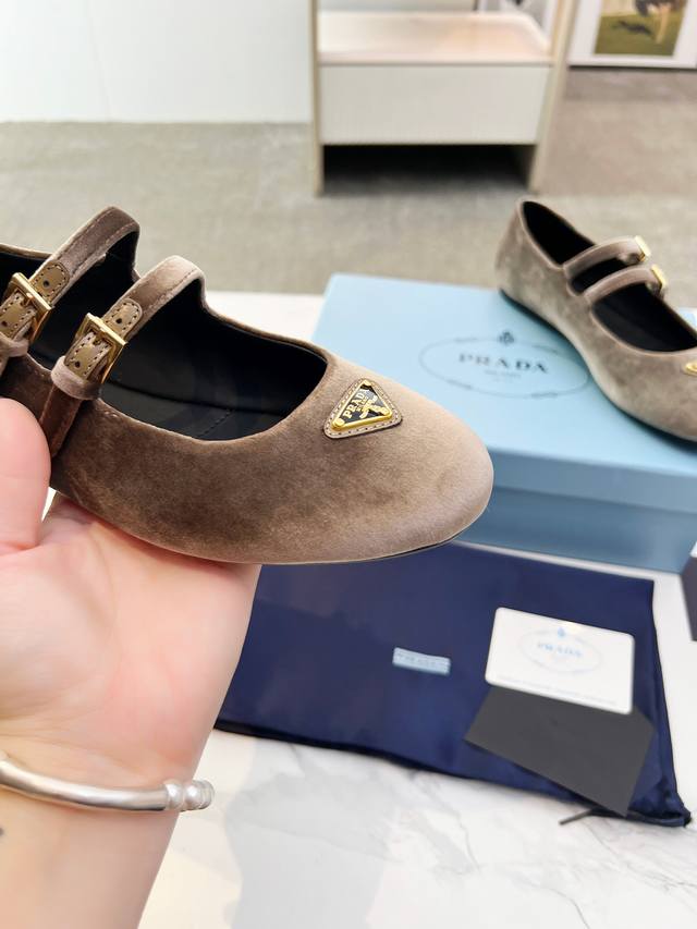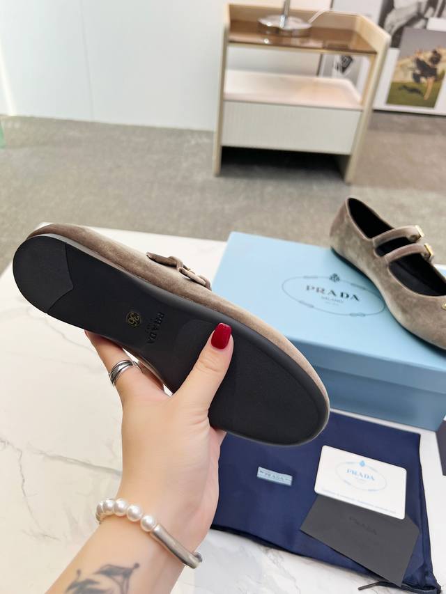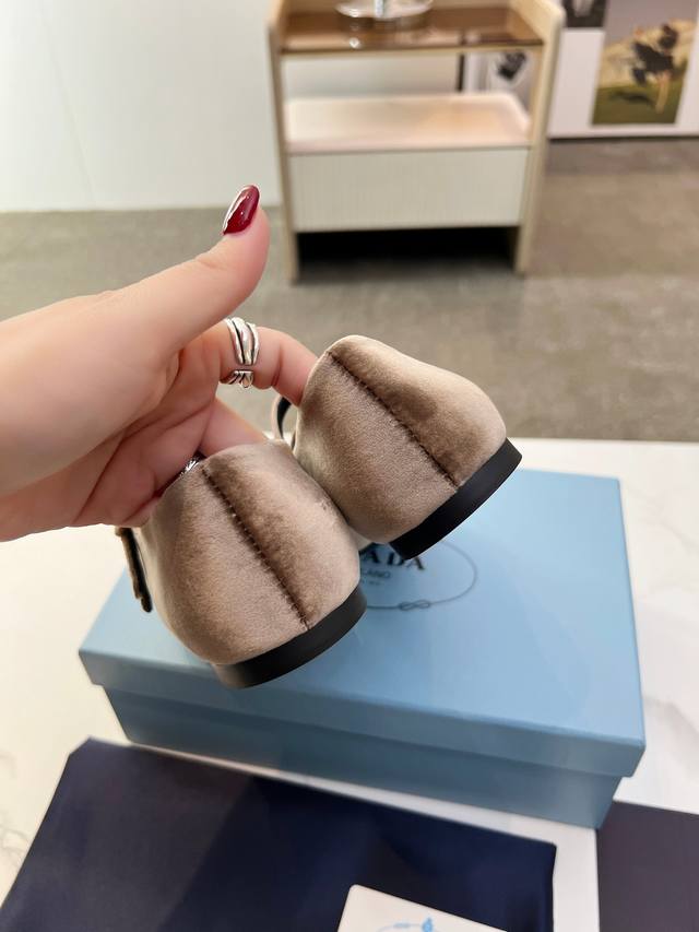 Prada 2025 New British Style Dancing Shoes, Loafers, Retro Fashion Classic Item. Inspired by the first major show at Paris Fashion Week, this new product's design is cleverly combined with the perfect shoe shape by lead designer D. Features brand buckles for added style and trendiness. Upper: Imported velvet. Lining: Cowhide lining. Sole: 1:1 original molded foam sole. Size: 35-41.