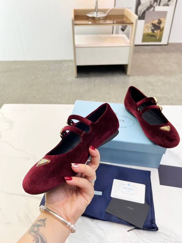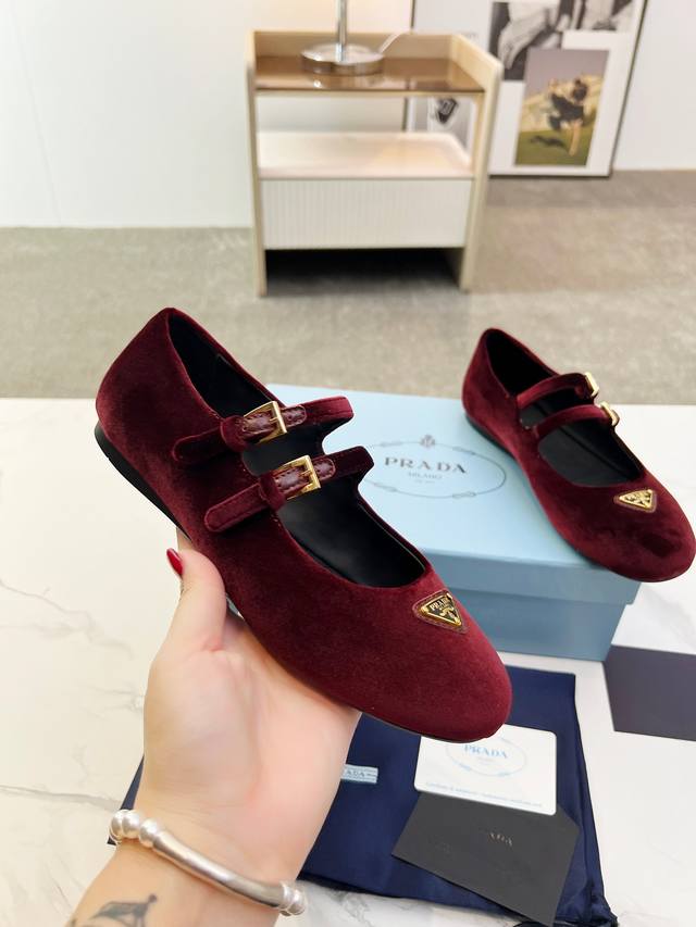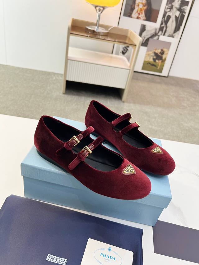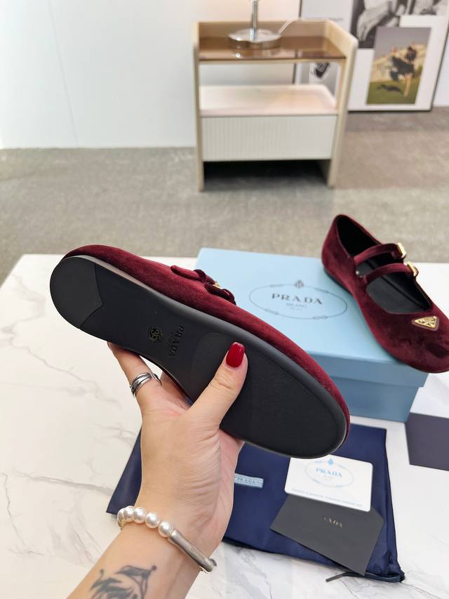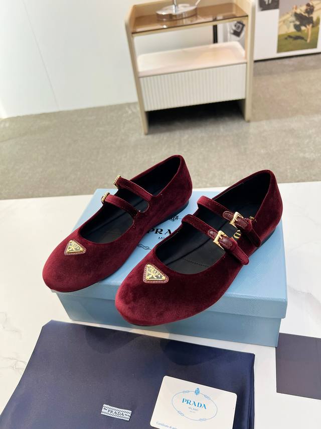 Prada 2025 New British Style Dancing Shoes, Loafers, Retro Fashion Classic Item. Inspired by the first major show at Paris Fashion Week, this new product is cleverly combined by the lead designer into a perfect shoe shape. Features the brand's buckle for added style and trendiness. Upper: Imported velvet. Lining: Cowhide lining. Sole: 1:1 original molded foam sole. Size: 35-41.