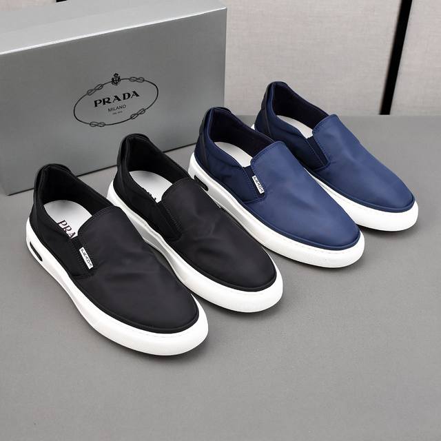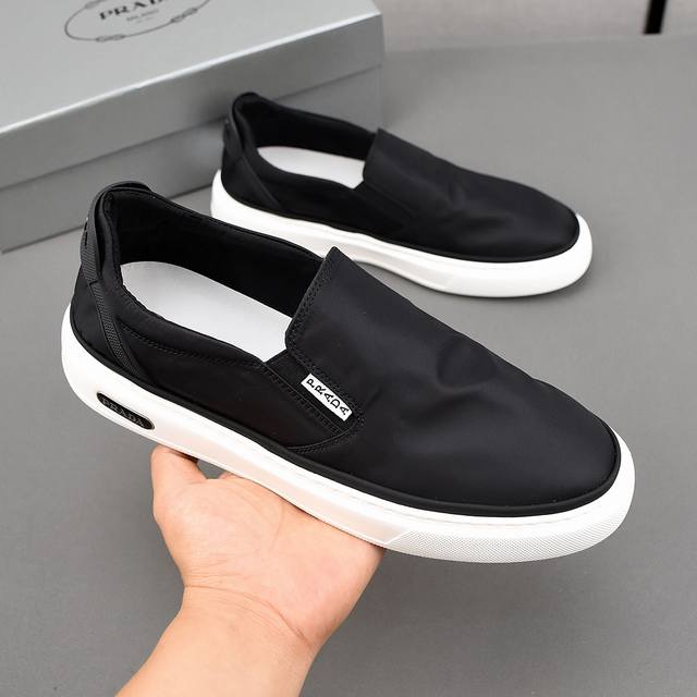 Prada breathable canvas shoes, with a comfortable, breathable fabric upper and an ultra-light, soft foam outsole. Men's sizes 39-44.