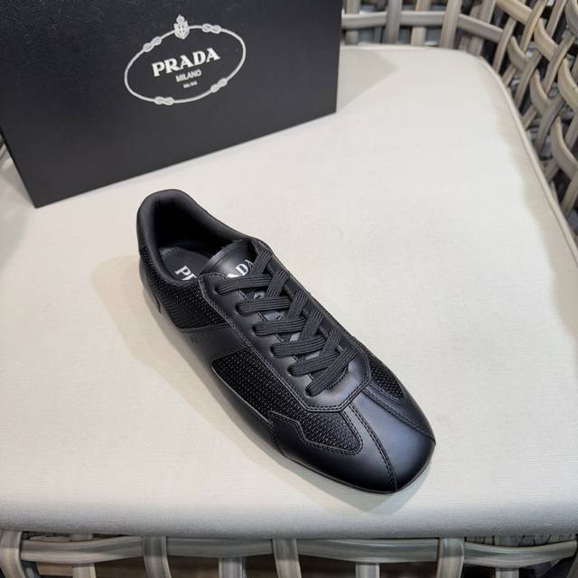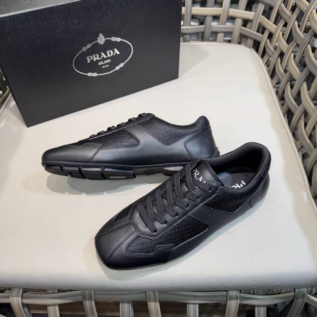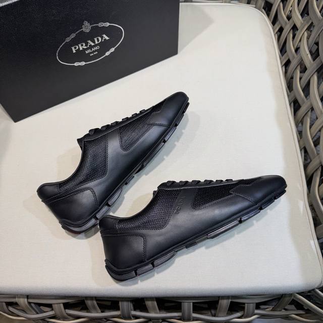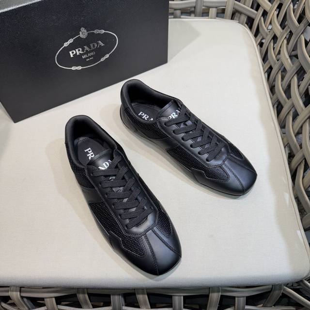 Prada classic men's lace-up sneakers | Imported cowhide and breathable mesh upper | Layered stitching for a lightweight and breathable feel | Soft and comfortable | Prada lettering on the side | Distinctive sporty style that reflects the brand's style | Lightweight embossed rubber sole | Cowhide lining | Excellent and stylish feel | Comes with full original packaging