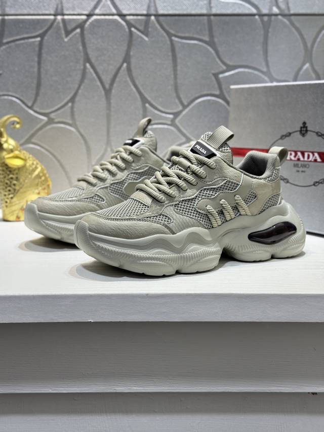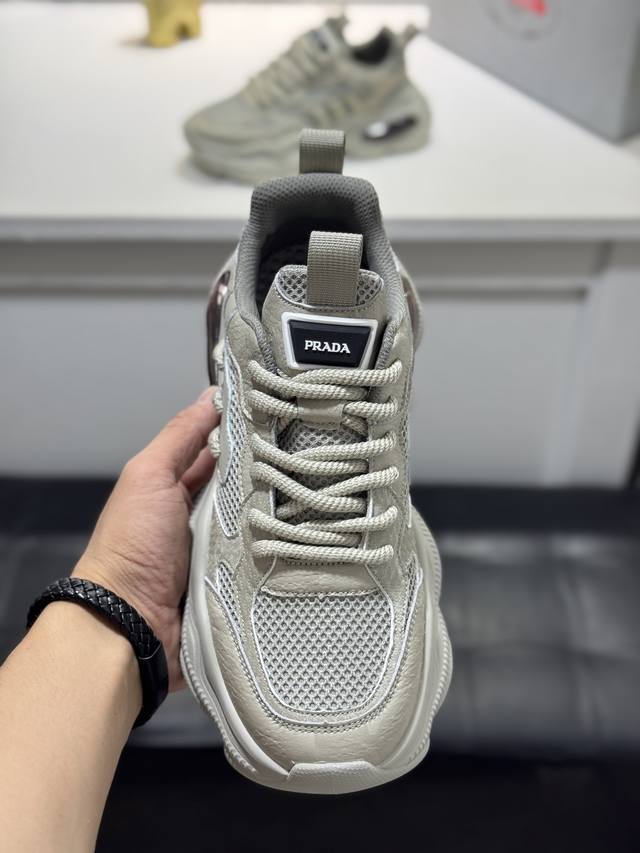 prada* High-end boutique DDD Prada latest model sneakers, leading the way in boutique styles, you know what I mean. Made with selected cowhide and patchwork materials. Lining: Mesh lining. High-end air-cushioned molded non-slip rubber outsole, exquisite lines, simple and stylish, comfortable and high-end, perfect for casual travel. DDD Size: 38-45, 45 customizable DDD