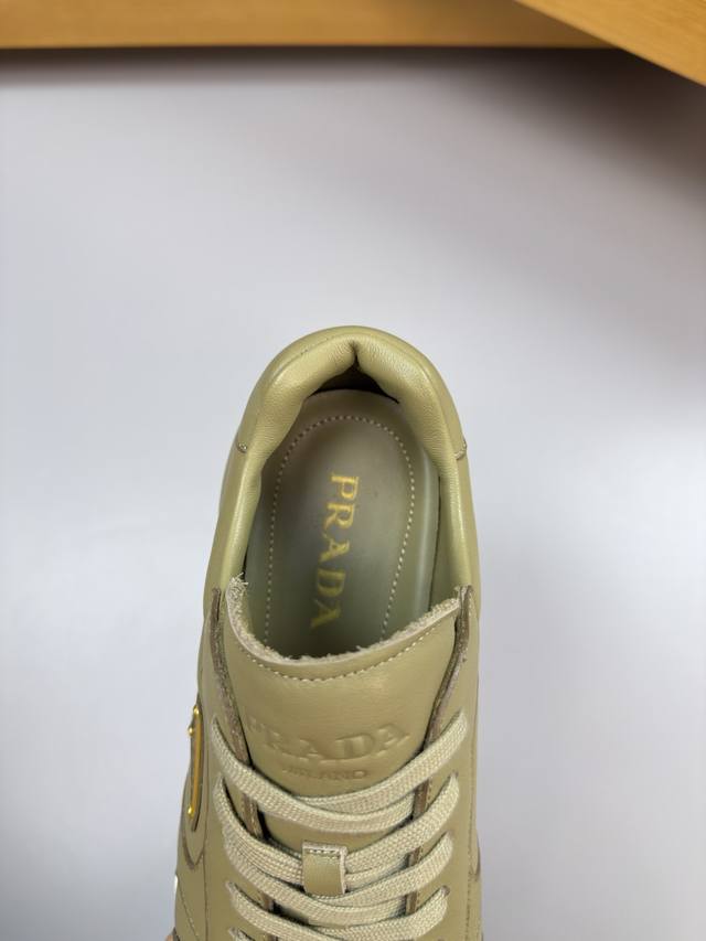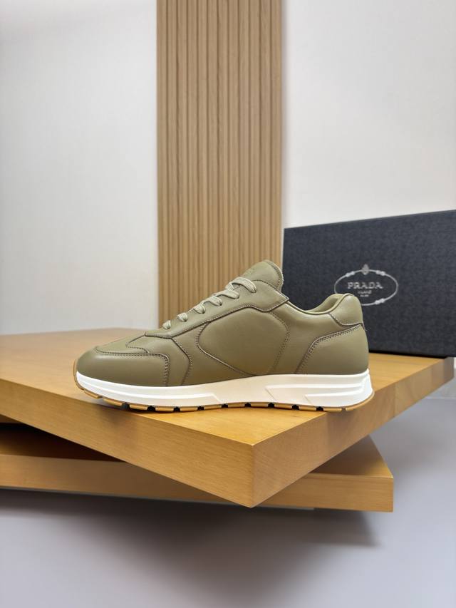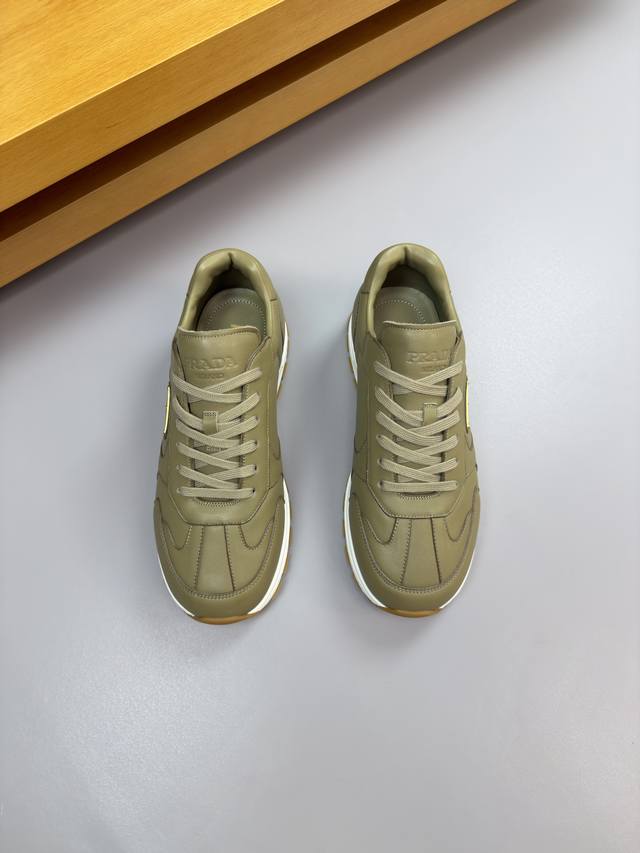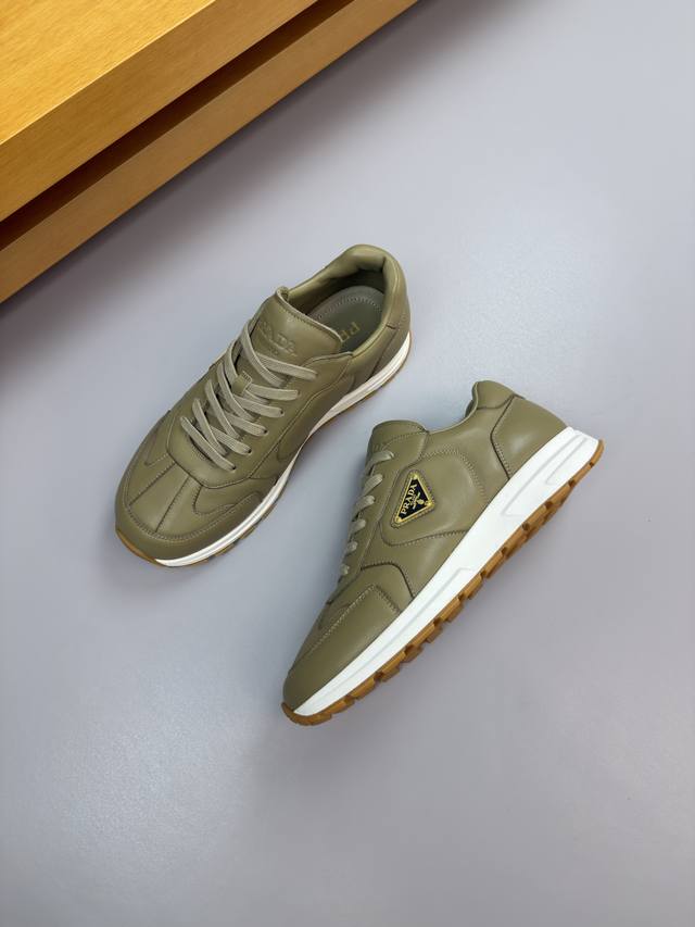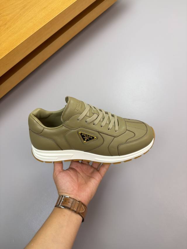 Prada - High-end quality original single casual sports shoes - Upper: Imported Nappa calfskin, silkscreened tongue, heel, and air-pressed brand logo, stitched brand metal buckles - Lining: Water-dyed perforated cowhide - Outsole : Ultra-lightweight TPU foam rubber; two-tone molded outsole - Super high quality control and exquisite workmanship: highlighting high-end luxury - Size: 39-44, 38, 45, 46, custom orders available Prd03858