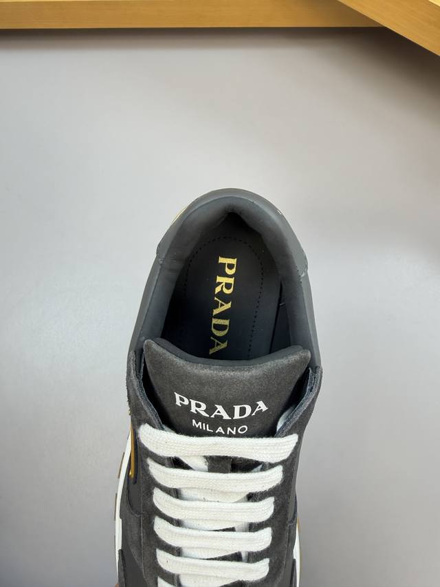 Prada Ddd - High-end quality original single casual sports shoes Ddd - Upper: Nappa calfskin, suede calfskin, brand metal buckles stitched on the shoe body, tongue, heel silkscreened high-frequency brand logo Ddd - Lining: Water-dyed cowhide Ddd - Outsole: Ultra-light TPU rubber: Two-tone molded outsole Ddd - Super high quality control and exquisite workmanship: Highlighting high-end luxury Ddd - Size: 39-44 38, 45, custom orders available 0234 DDD