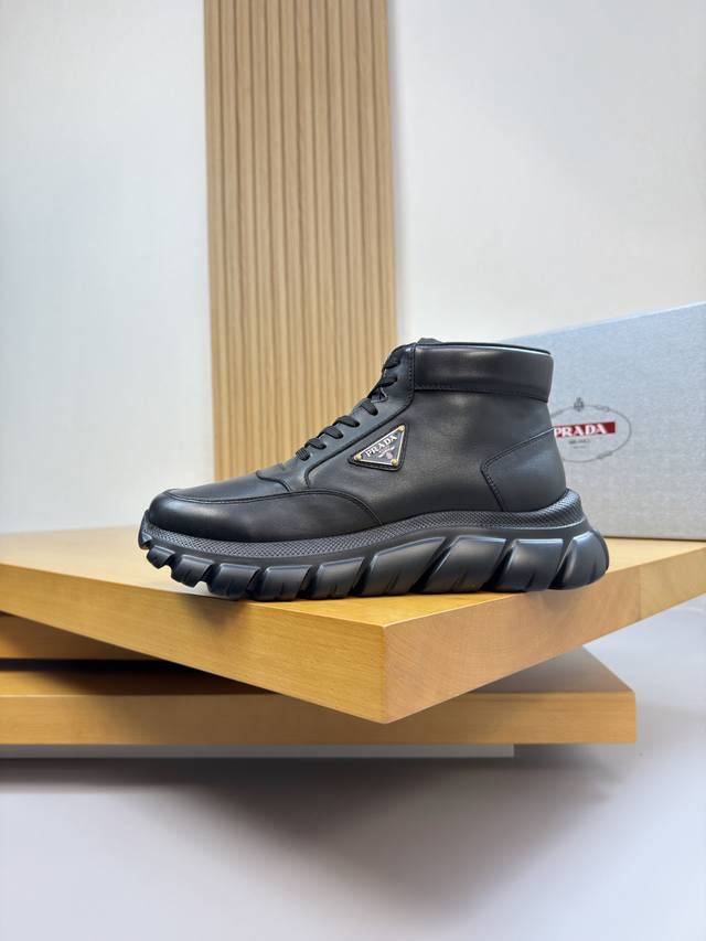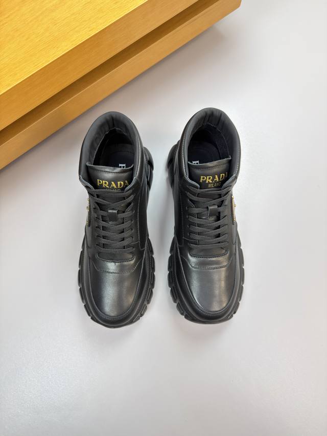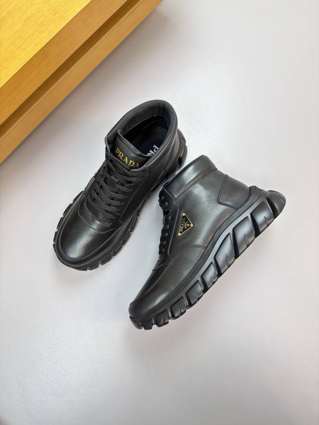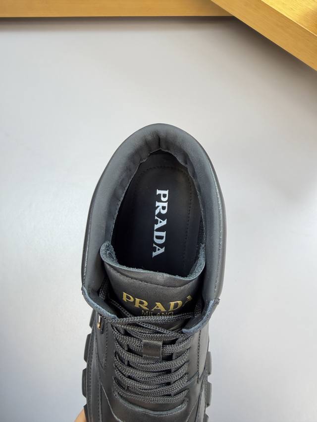 Prada Ddd - High-end quality original single high-top casual sports shoes Ddd - Upper: Nappa calfskin, shoe body, stitched brand logo metal buckle, tongue, silk screen printed brand logo Ddd - Lining: Water-dyed cowhide Ddd - Outsole: Ultra-light TPU foam; molded outsole Ddd - Super high quality control and exquisite workmanship: highlighting high-end luxury Ddd - Size: 38-44 45, custom orders available 03303 DDD