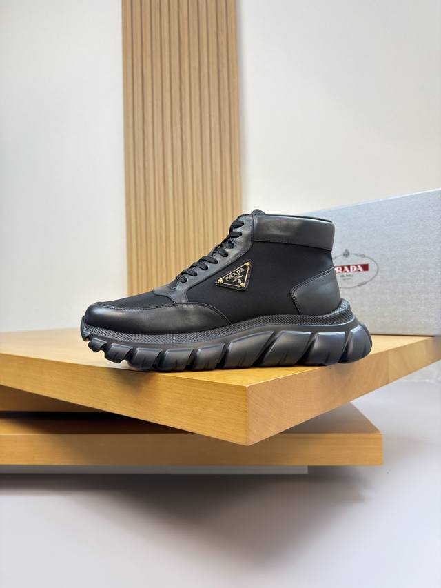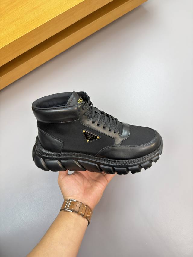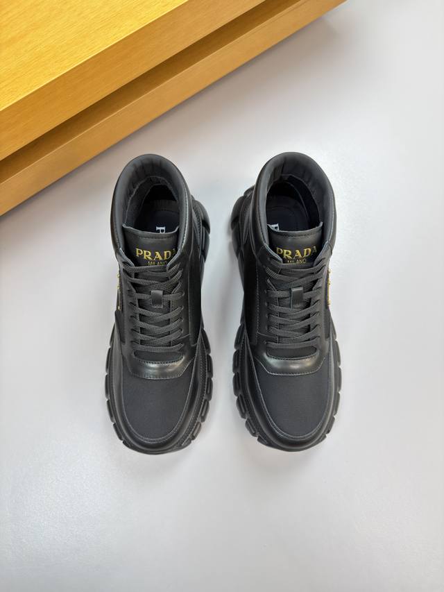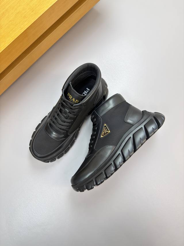 Prada Ddd - High-end quality original single high-top casual sports shoes Ddd - Upper: Nappa calfskin, brand high-gloss canvas, shoe body with stitched brand logo metal buckles, tongue with silkscreened brand logo Ddd - Lining: Water-dyed cowhide Ddd - Outsole: Ultra-light TPU foam; molded outsole Ddd - Super high quality control and exquisite workmanship: highlighting high-end luxury Ddd - Size: 38-44 45, custom orders available 03303 DDD