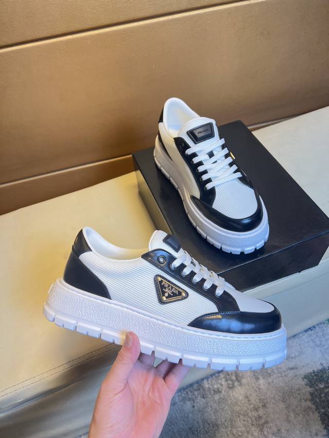 Prada - High-end quality original single item - Upper: Silk calfskin, brand canvas fabric, brand metal buckles - Lining: Mesh, insole; Top-grade cowhide - Outsole: Ultra-lightweight TPU foam; Molded outsole - Super high quality control and exquisite workmanship: Highlighting high-end luxury - Size: 38-44, 45 can be customized