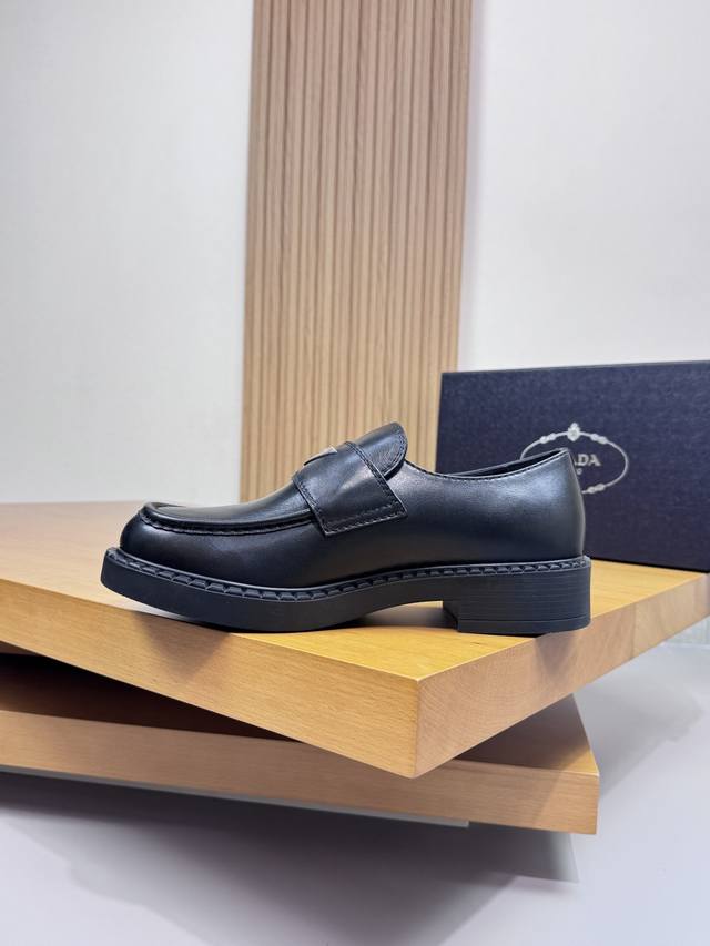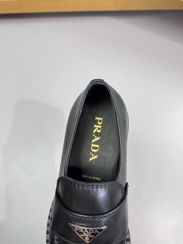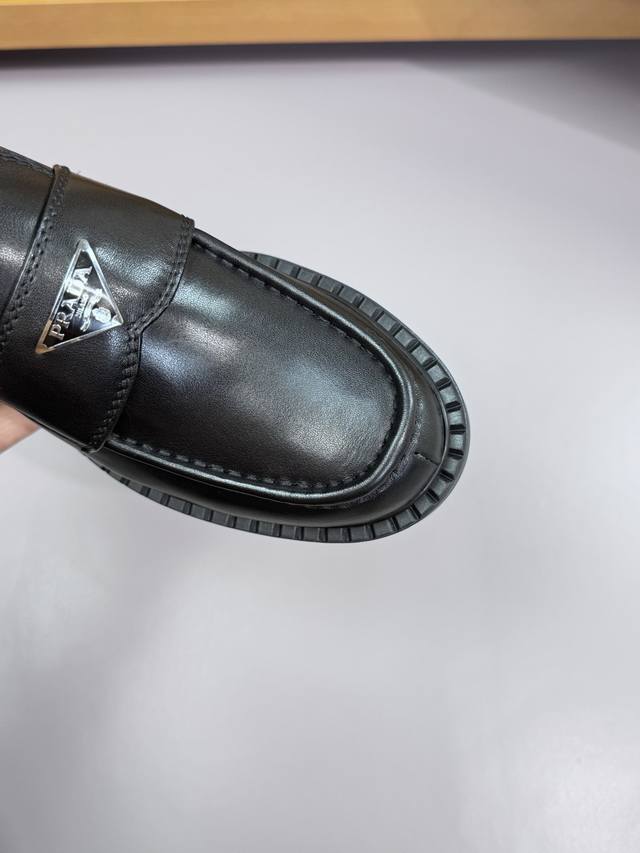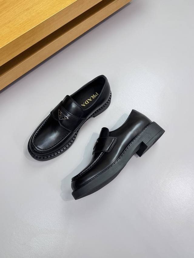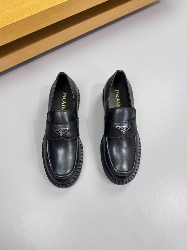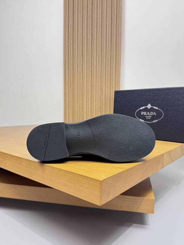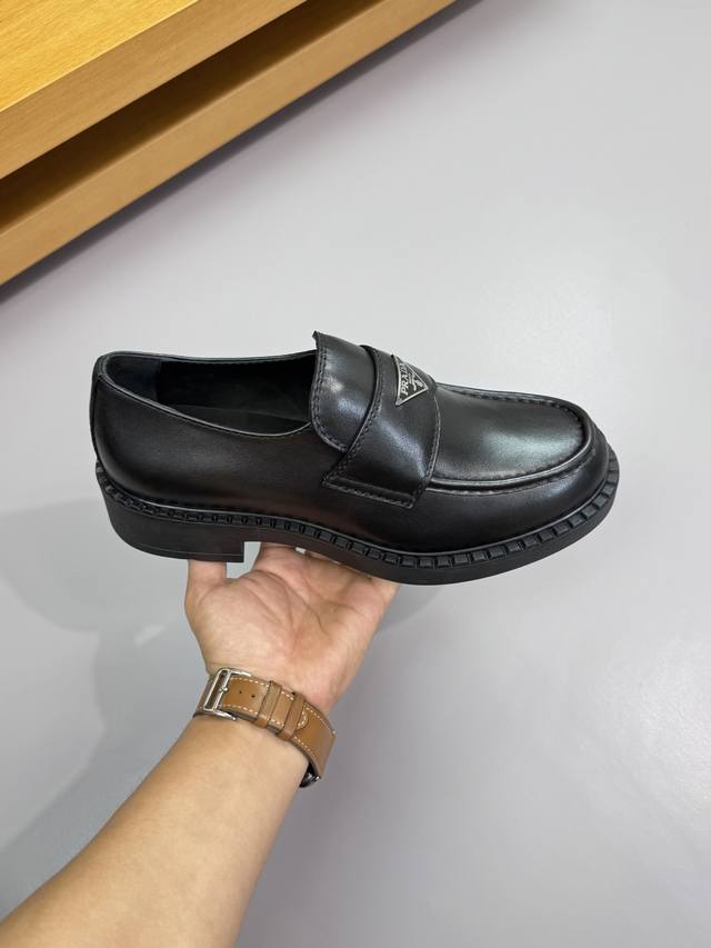 Prada - High-end quality original single-piece formal leather shoes - Upper: Imported Nappa calfskin, hand-stitched marker stitching, brand metal buckle decoration - Lining: Water-dyed cowhide - Outsole: Ultra-lightweight Tr rubber; molded outsole - Super high quality control and exquisite workmanship: highlighting high-end luxury - Size: 39-44 38, 45, 46, custom orders available Prd0155