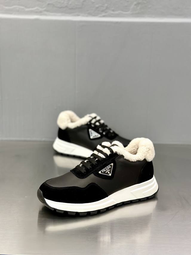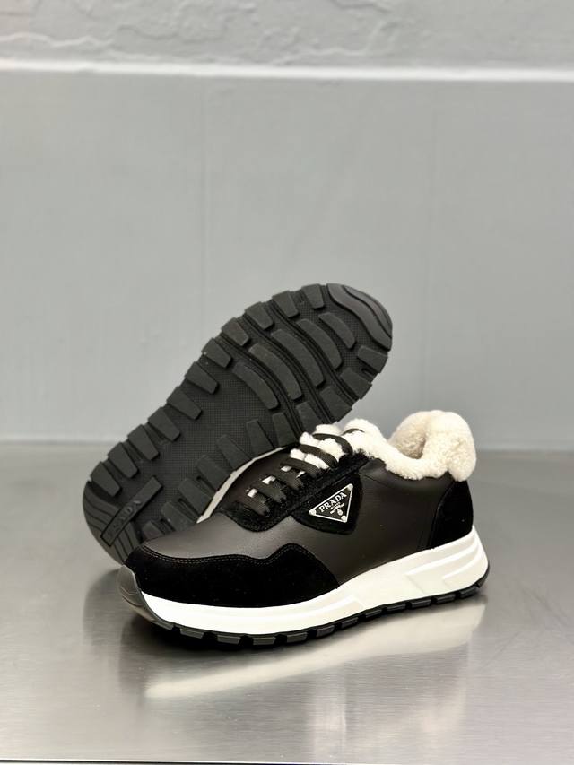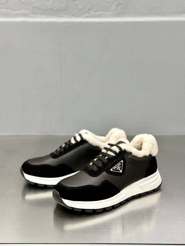 Prada Men's New Wool Sneakers DDD These sneakers present a modern silhouette, reinterpreting the brand's classic design with clean lines and flowing details. Crafted from calfskin and technical fabric, they feature a triangular metal logo on the lateral side, bright TPU trim on the heel, an extended and padded heel lining for enhanced comfort, a silkscreened logo on the tongue, a thick, open-work rubber sole, and a full-grain leather lining with a logo leather insole. They offer added height, comfort, versatility, and a stylish look! Comes with full original packaging! DDD Sizes: 39-40-41-42-43-44 (Standard dress shoe size 45). Custom orders are possible. Returns and exchanges are not supported. DDD