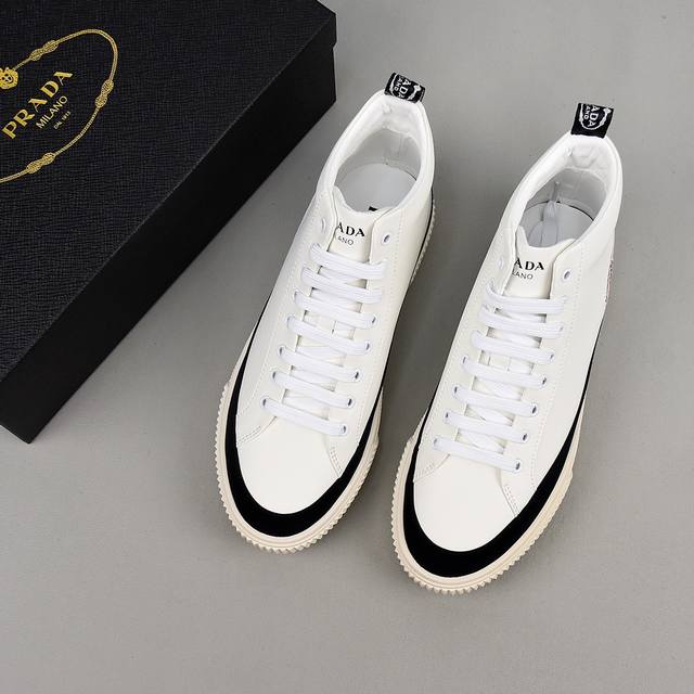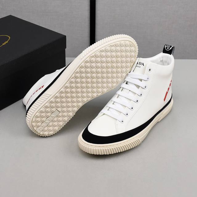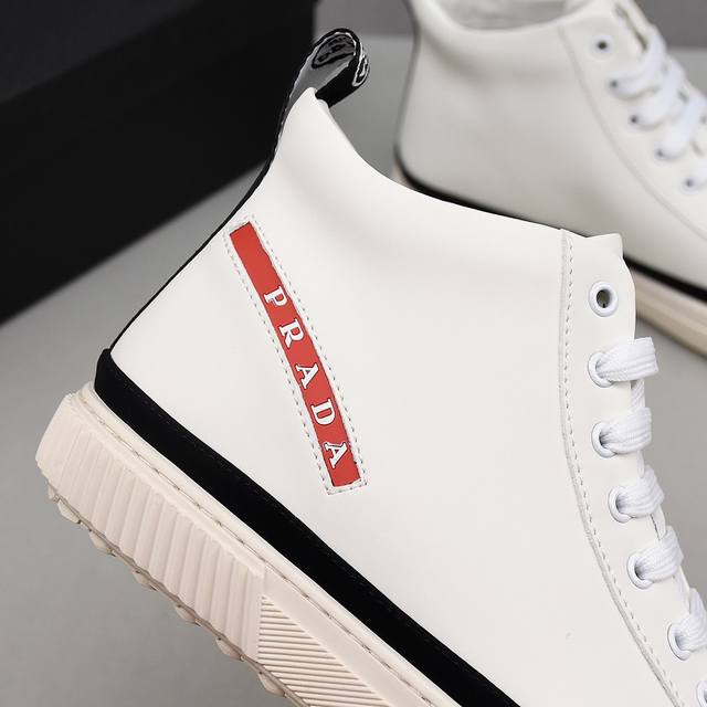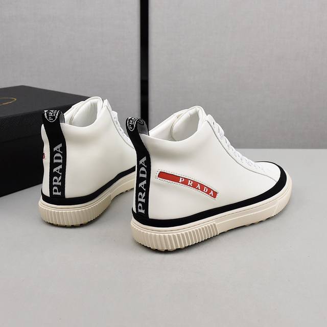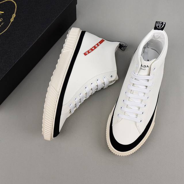 prada Prada high-top sports casual shoes. Made of cowhide upper, sheepskin lining, and rubber outsole, they are comfortable to wear. Men's sizes range from 38 to 44. Choose your usual size.