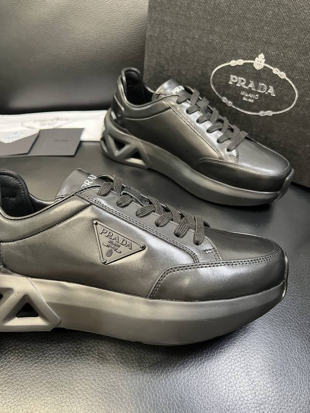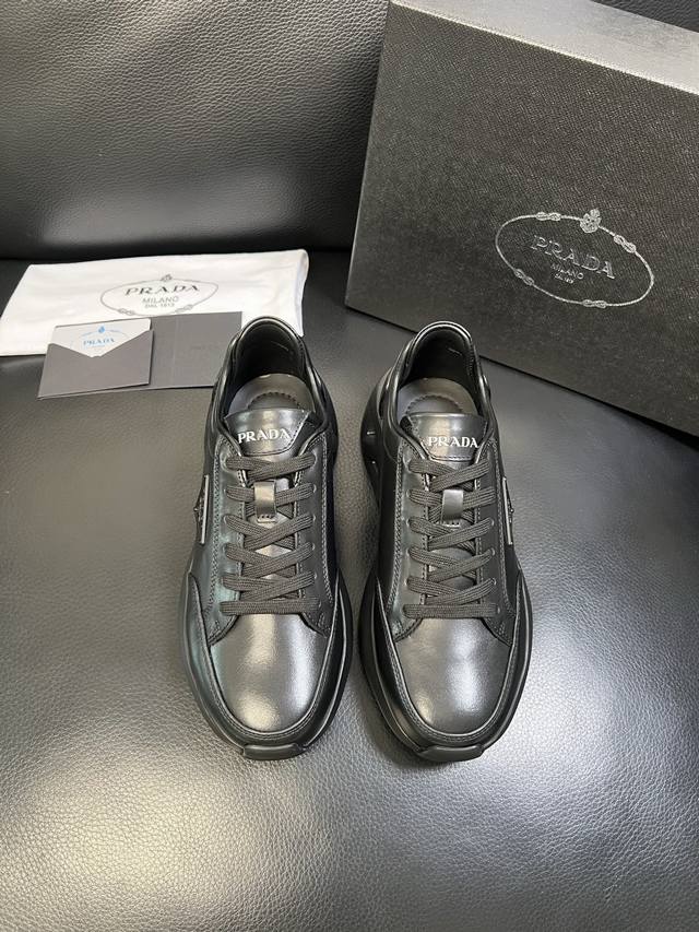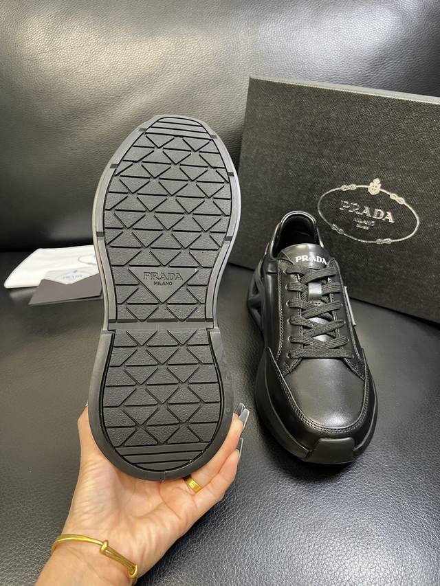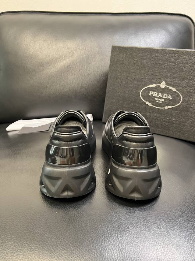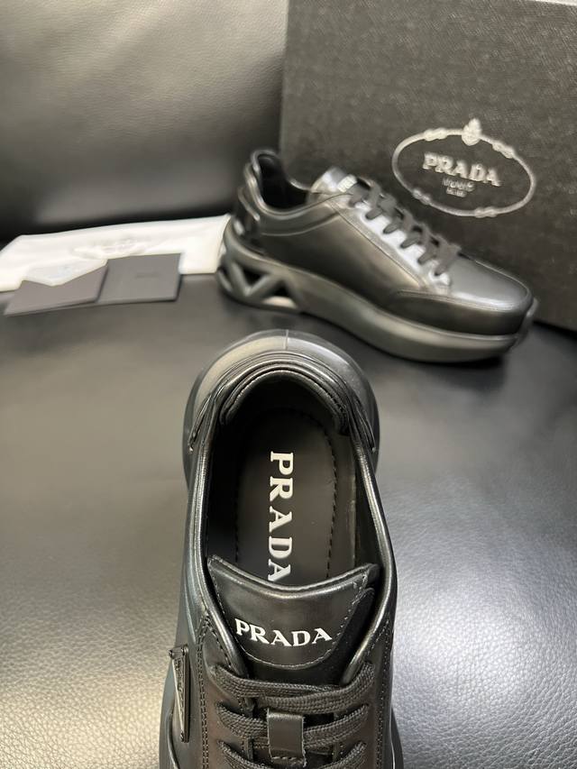 Prada top-tier craftsmanship, identical to Prada boutique items, original factory configuration with Italian imported cowhide upper and imported cowhide lining for breathability and comfort. Outsole: original factory-supplied sole. High-quality original factory order, welcome to compare. Sizes 39-44, custom size 45 available.