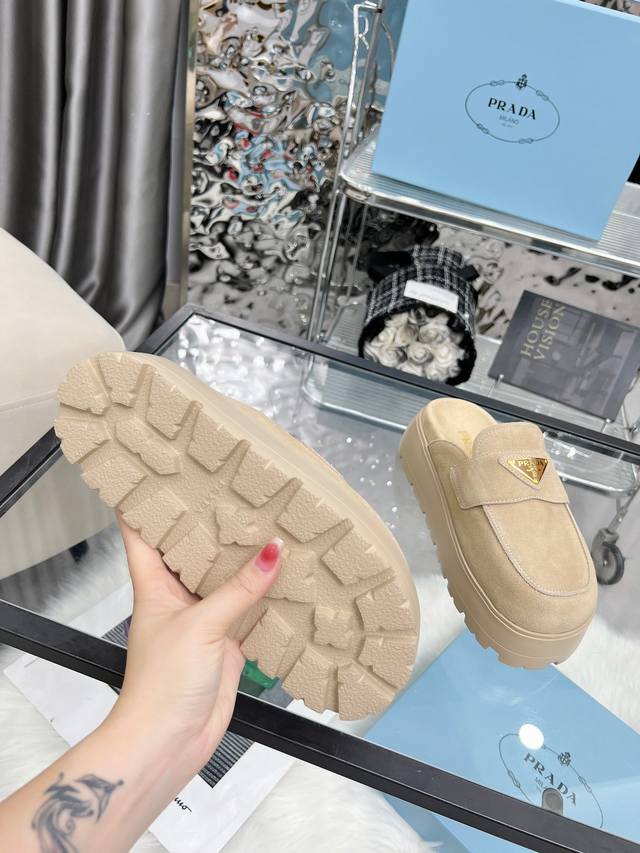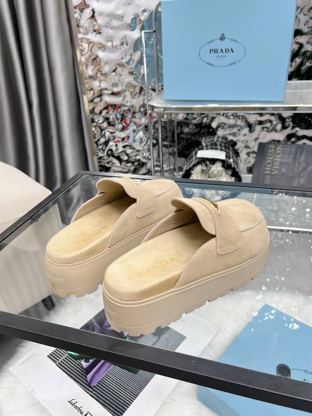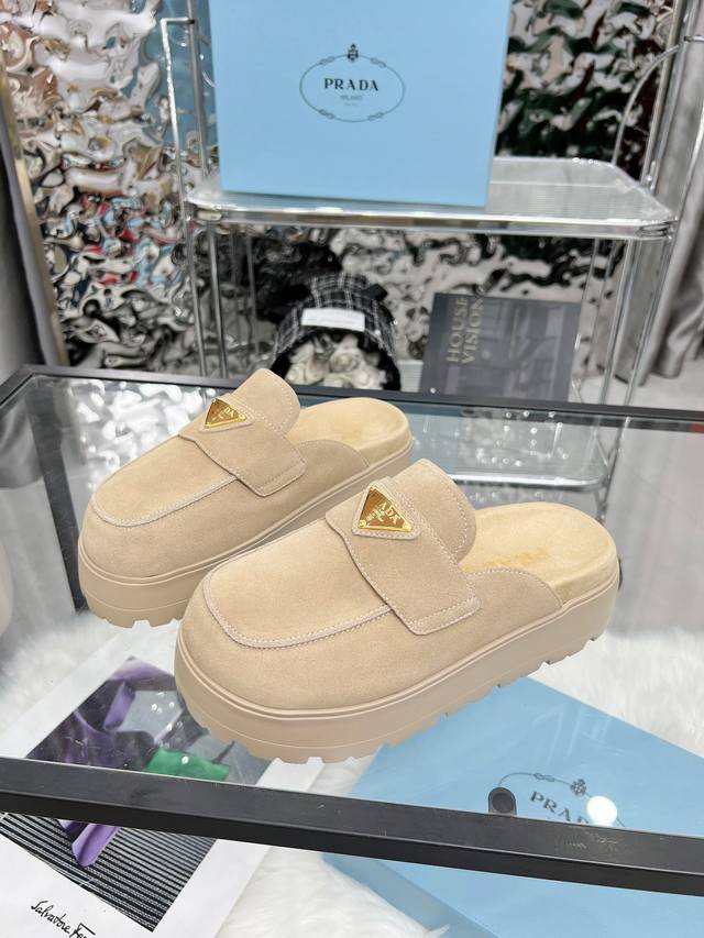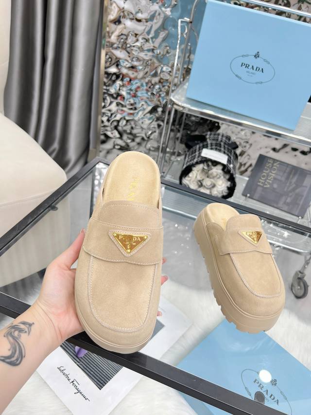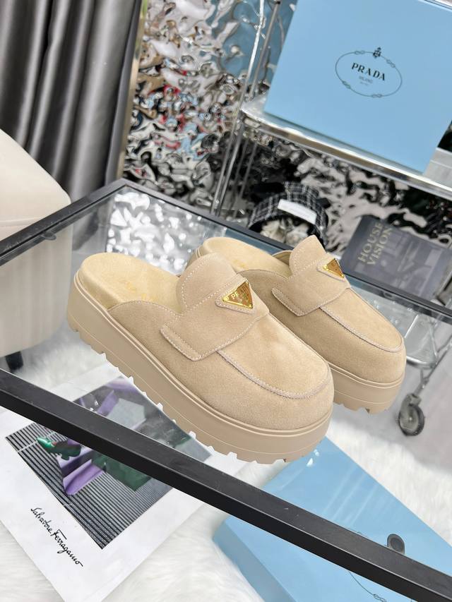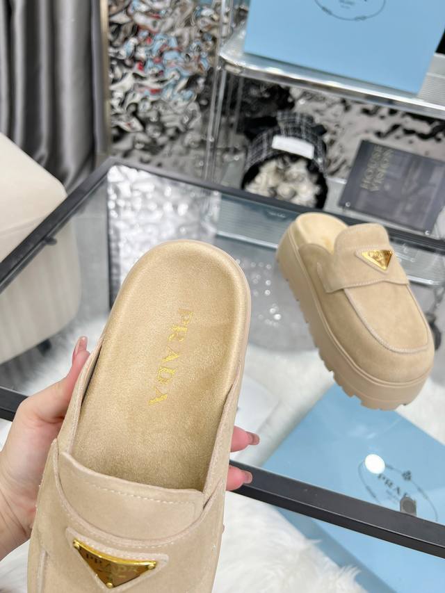 prada2025 Prada Closed-Toe Slippers Ddd Prada 25Ss New Spring/Summer Modern Style The lines and original architectural volume define these intricately charming Prada triangles, whose iconic geometry inspires the heel design, highlighting the tapered shape and soft curves with a unique modern touch. High-gloss suede lining lambskin, available in 3 colors, sizes 35-41 DDD