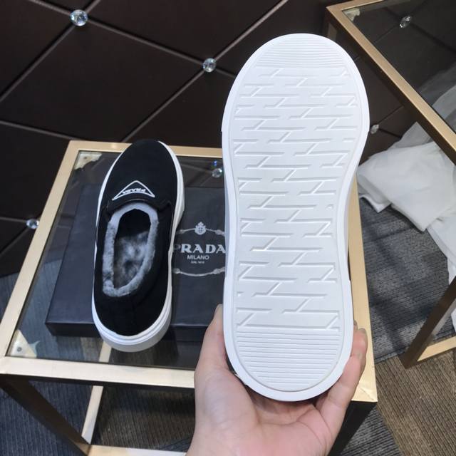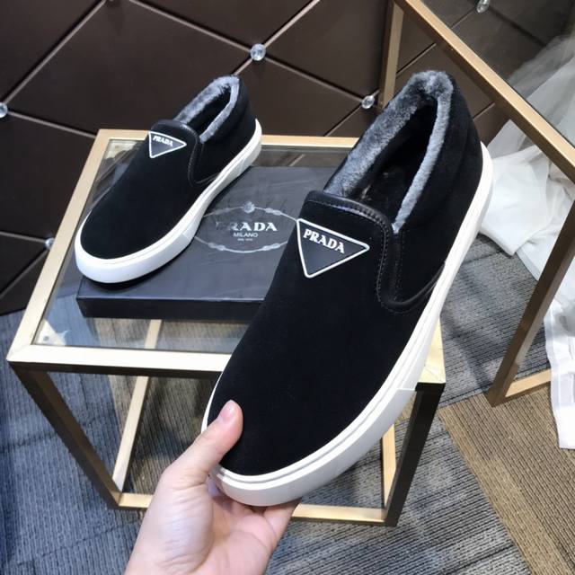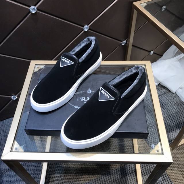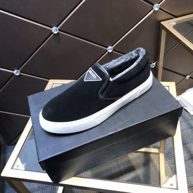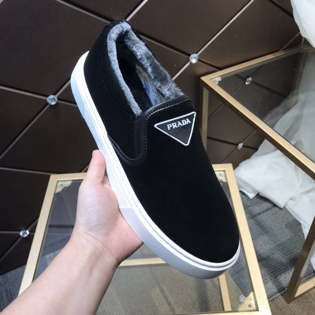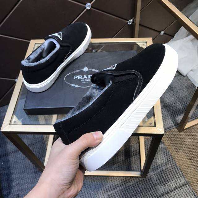 Prada's latest men's shoes with fur lining, a high-end brand, newly launched, top luxury brand, latest fashionable casual men's shoes, trendy and versatile, easy sporty style, imported cowhide upper, fur lining, lightweight and comfortable to wear, sizes 38-44 DDD