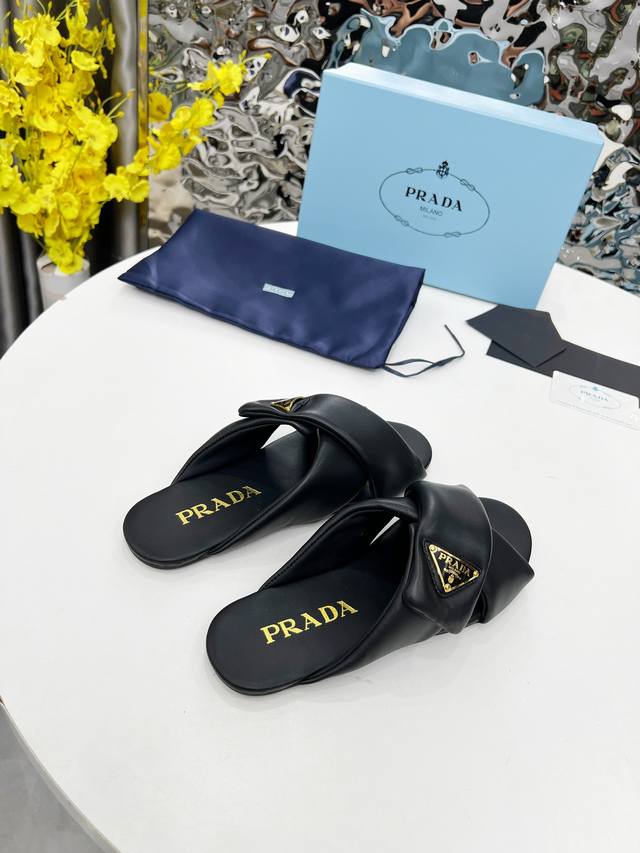 Prada's top-of-the-line 2025 mule shoes are incredibly convenient to wear. No need to bend over or tie laces when changing shoes before heading out; just slip them on and go. Suitable for spring, summer, and autumn. These mules have a lightweight rubber foam sole, and Prada's iconic enamel triangle logo is highly recognizable and versatile. It's surprising that Prada would release such adorable shoes, demonstrating the popularity of puffer shoes! Material: Imported mixed sheepskin. Sizes: 35-41.
