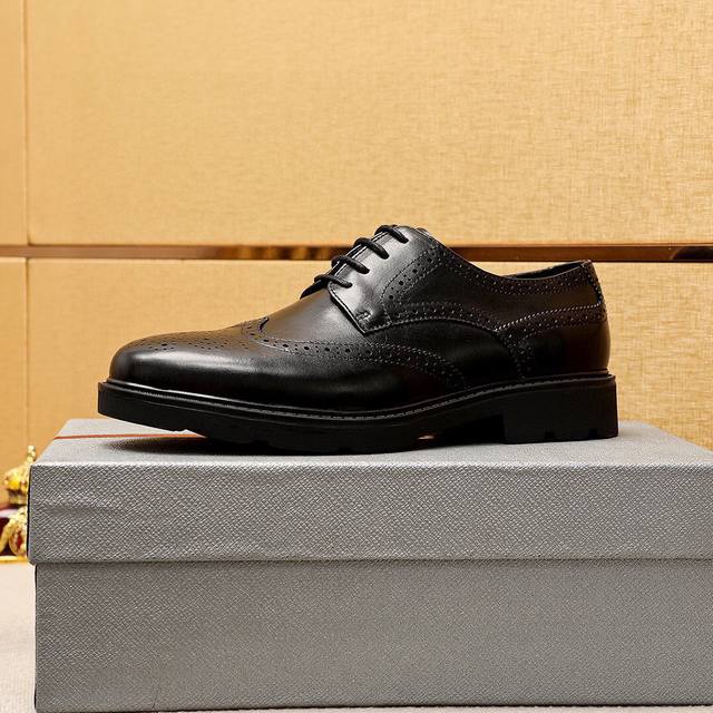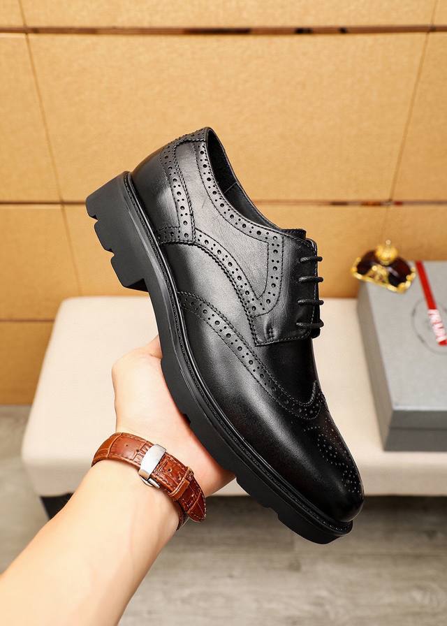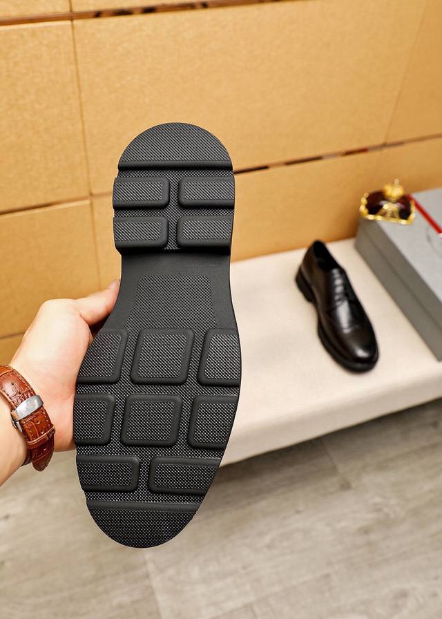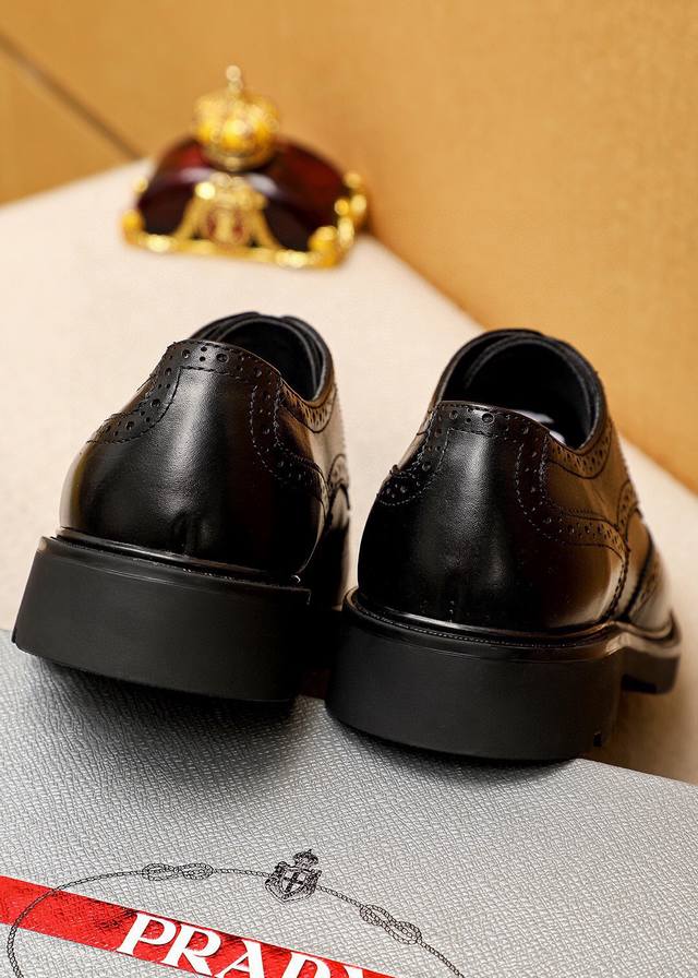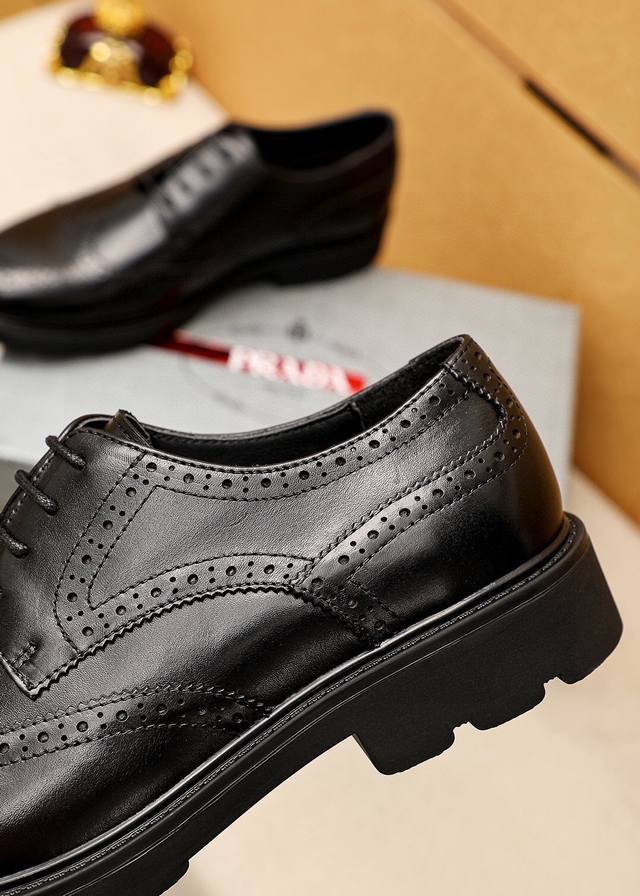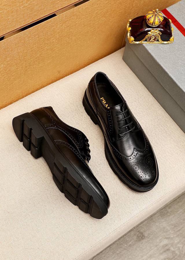 Product Trademark: Prada Business Leather Shoes DDD True to Size: 38-44, 45 (Custom Made) DDD Material: Selected imported top-grain calfskin upper, imported water-dyed cowhide lining. Strong three-dimensional visual effect, rubber outsole DDD Colors: 2 colors available DDD