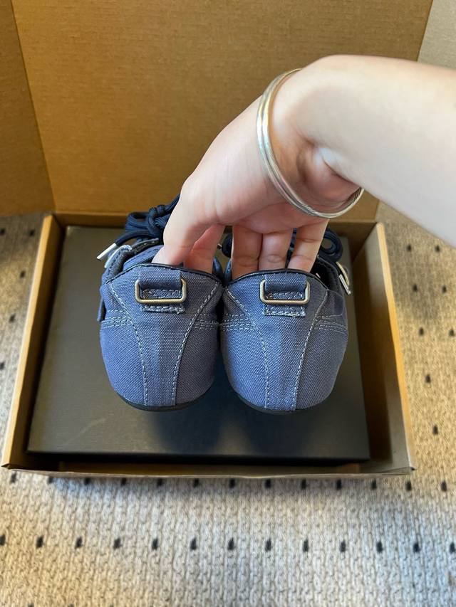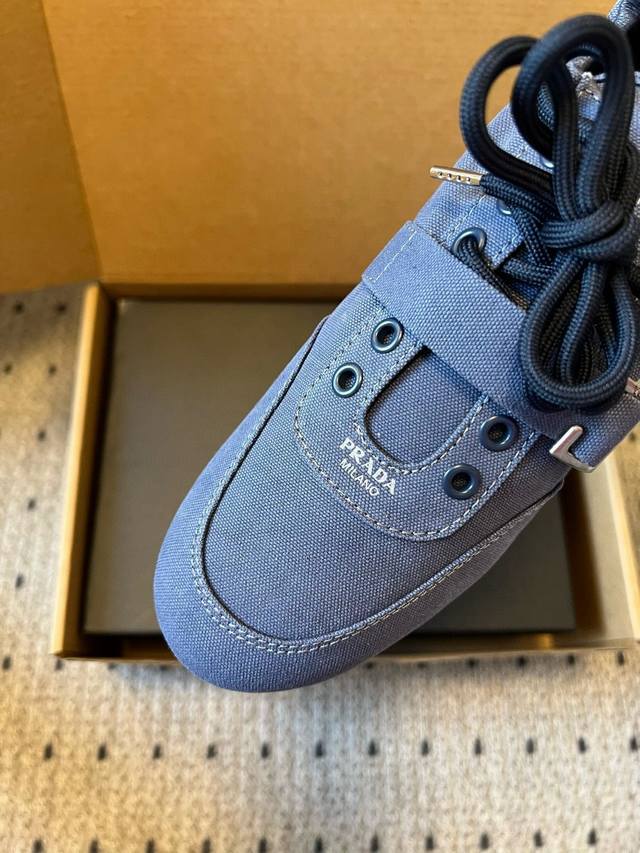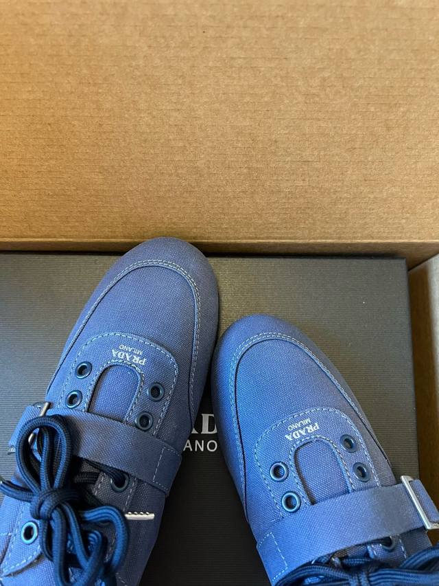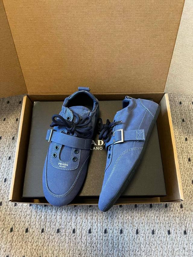 Prada Classic Retro German Training Shoes Casual Shoes DDD These shoes feature a low-top, streamlined silhouette reminiscent of retro German training shoes, with a pointed toe and a clean, simple overall design. The tongue is printed with the classic Prada logo, and the laces match the color of the shoe body, enhancing brand recognition in the details. The narrow last design provides a snug fit and a more streamlined look. DDD The upper is made of smooth nylon satin leather with a delicate feel and a subtle sheen. The shoe body is free of unnecessary embellishments, relying on the one-piece molding to create a three-dimensional effect. The sole is made of lightweight rubber, balancing softness and durability, suitable for everyday wear. DDD Upper: Denim Ddd Lining: Sheepskin Ddd Outsole: Rubber Outsole Ddd Height Increase: 2cm Ddd Size: 35-40, Size 40 is custom-made and non-refundable DDD