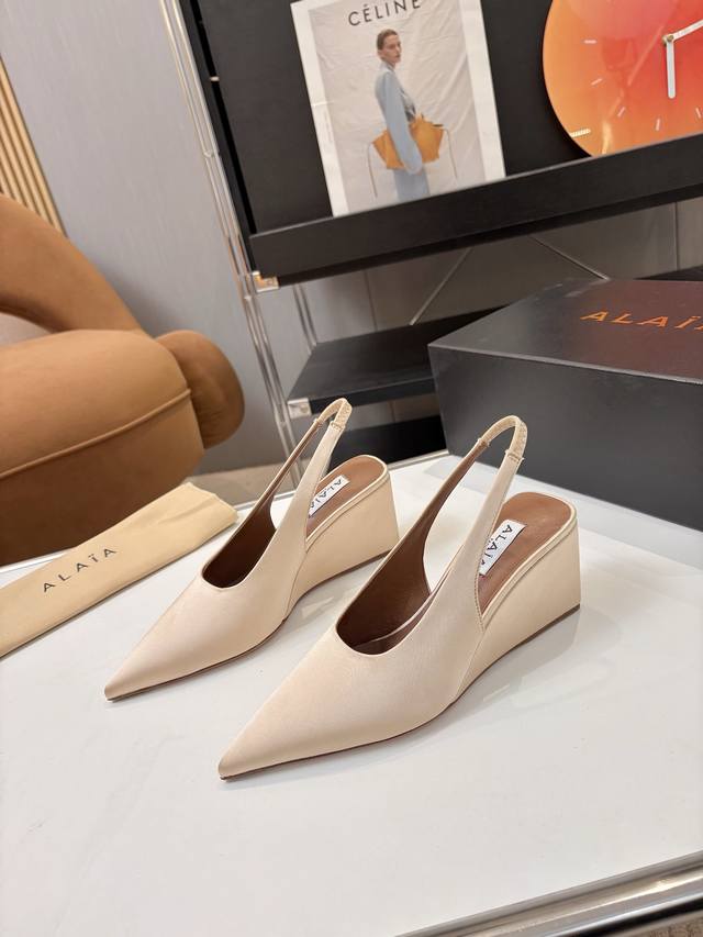 price: Ddd Brand: Alaia DDD 26'Ss Wedge Series Alaia Pointed-Toe High-Heeled Mules! Countless famous designers regard it as "Designer of Designers," influencing the style of many! Rivets, metal buckles, corsets, and sexy snakeskin