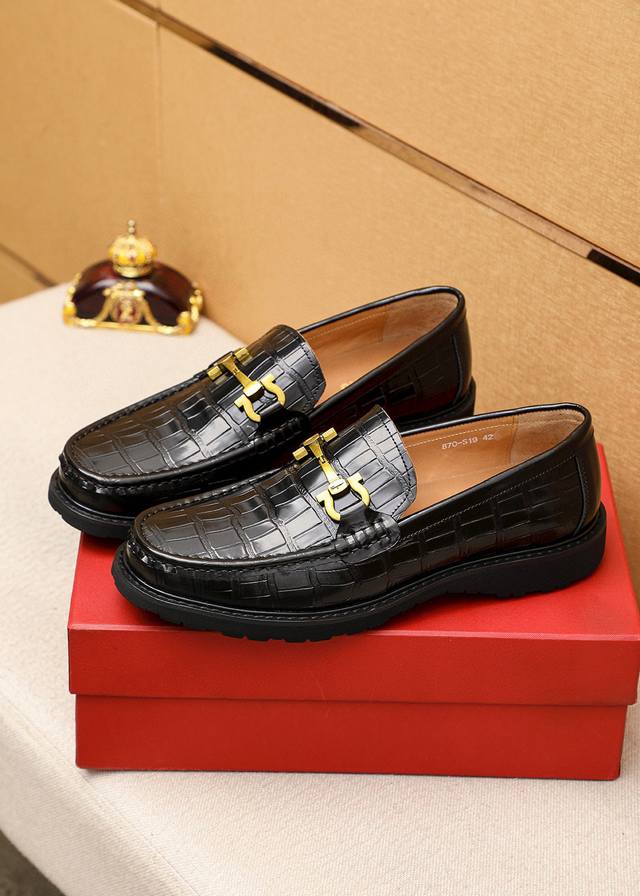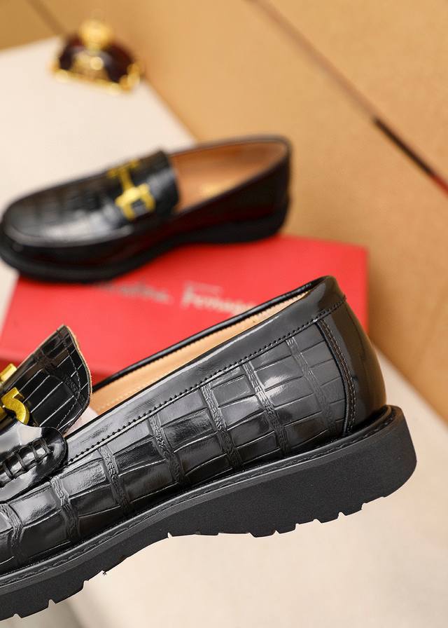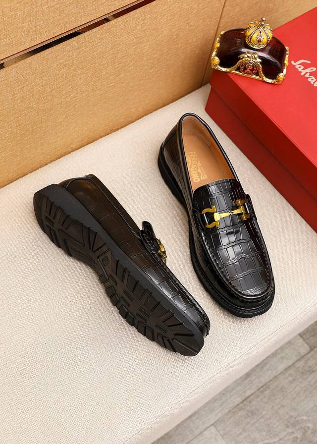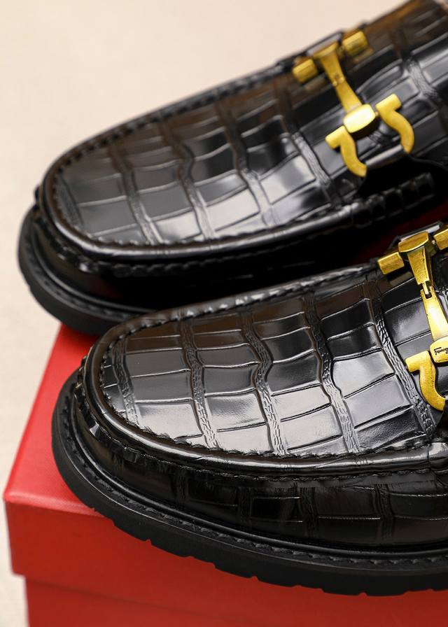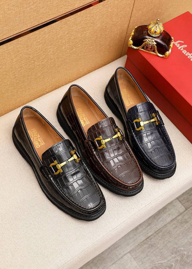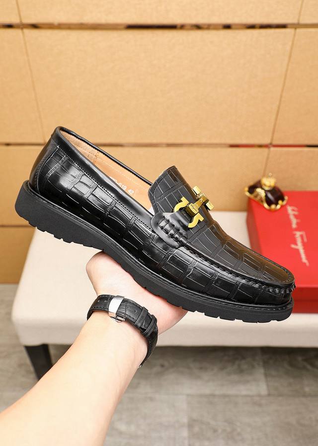 Product Trademark: Ferragamo Casual Leather Shoes True to Size: 39-44 45. Custom Made Materials: Selected imported top-grain calfskin embossed upper + luxurious hardware buckles, imported water-dyed cowhide lining. Strong three-dimensional visual effect, original rubber outsole. Colors: 3 colors available.