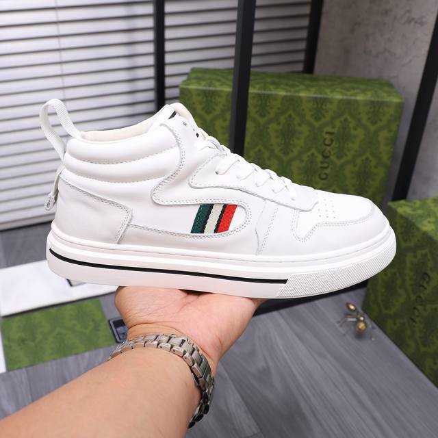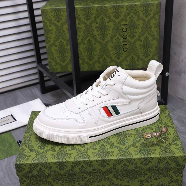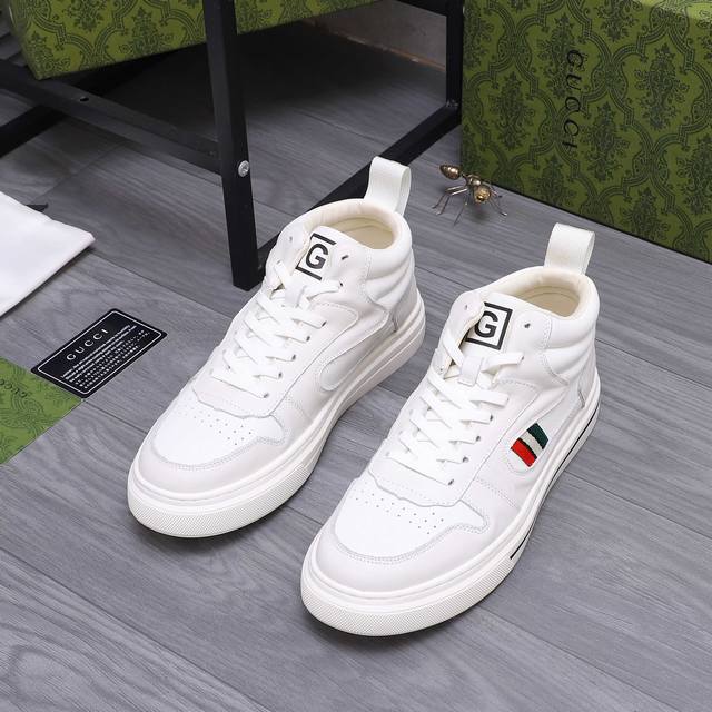 Product Trademark: Gucci Casual High-Top Lace-up Men's Shoes True to Size: 38-44 Material: Selected cowhide upper, breathable mesh lining, cowhide insole, rubber outsole