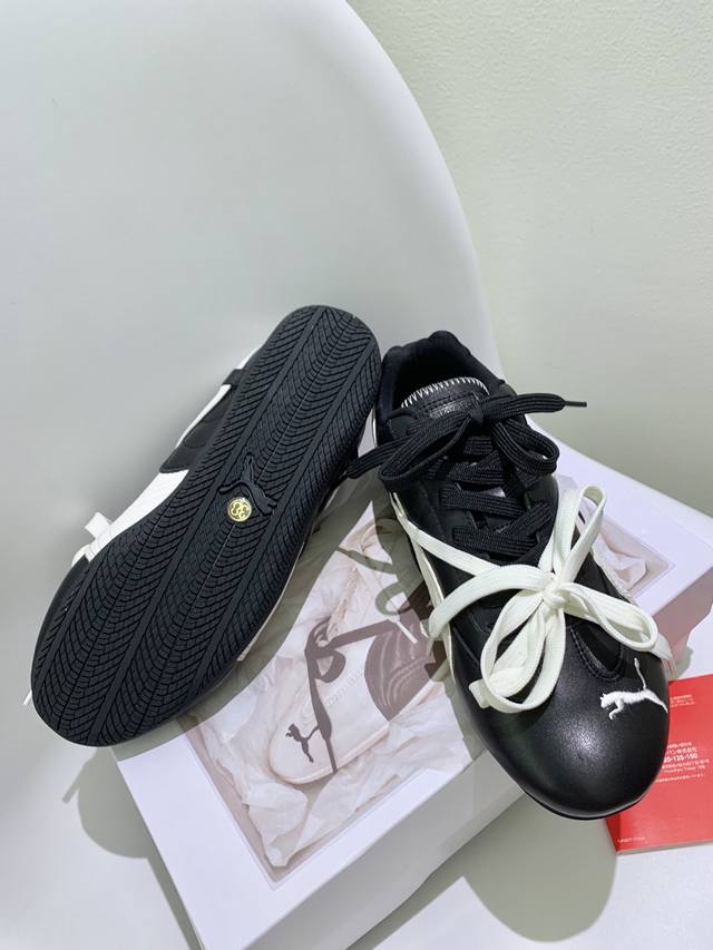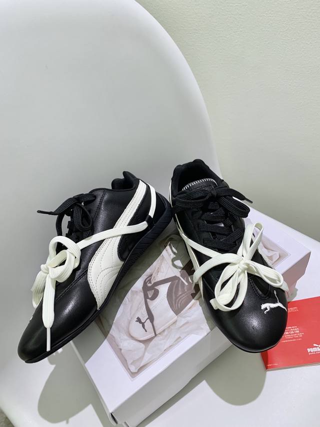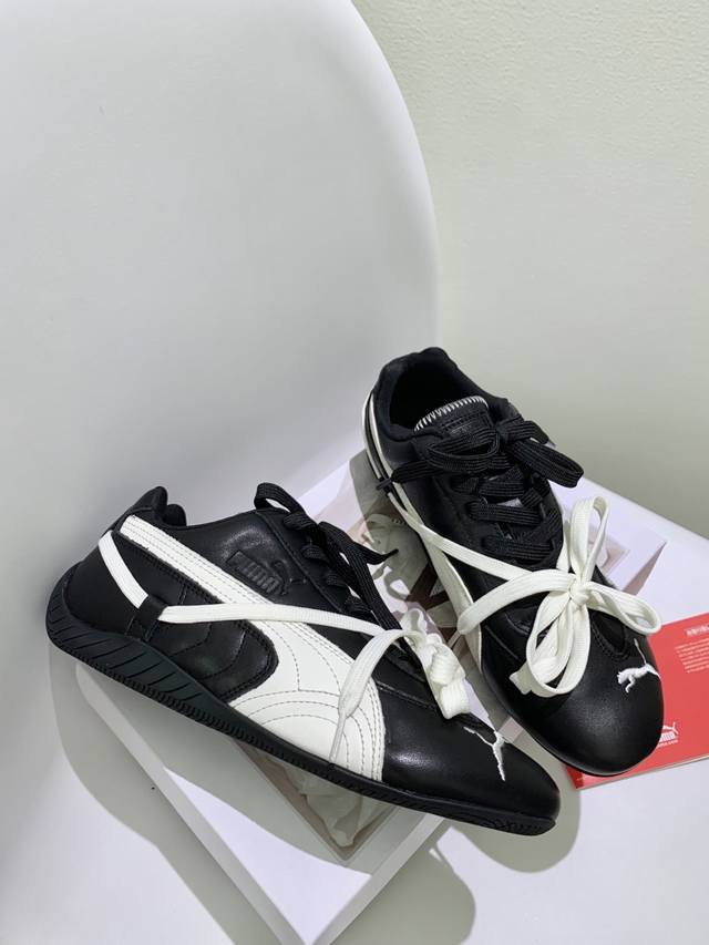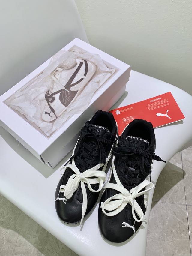 Top-quality Rose x Puma 25Ss autumn/winter collaboration, thin-soled racing German training double-lace casual sneakers! The classic black and white design blends Rose's innate effortless charm with a sporty style, elevating the classic, effortless everyday sports aesthetic to a whole new level. The addition of a creative bow tie adds a playful touch, creating a perfect fusion of fashion and sport. This is undoubtedly a passionate collision of fashion and sport!