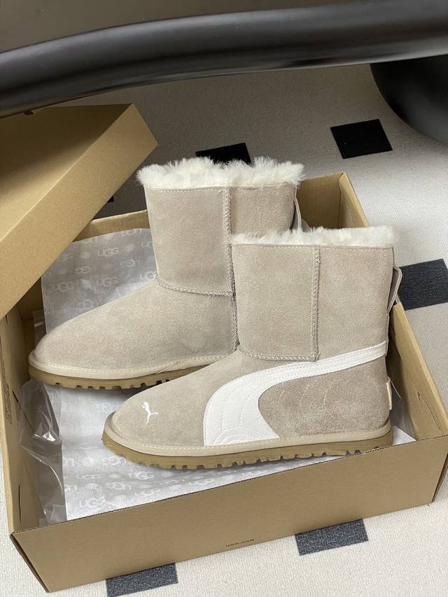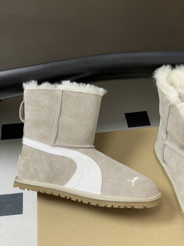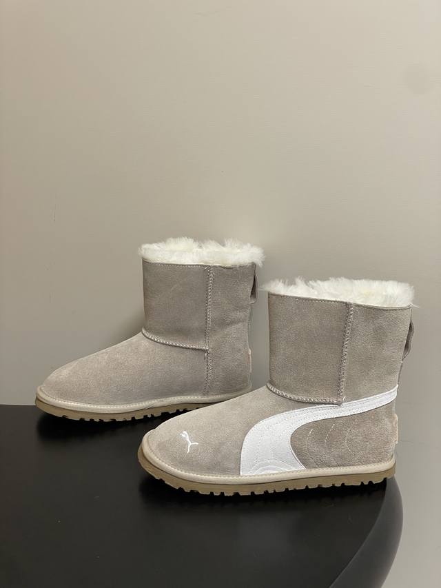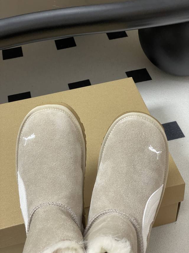 Ugg X Puma Collaboration ~ Limited Edition Snow Boots Series DDD Limited edition series, a snow boot that you won't see anywhere else wearing it. Features a simple collaborative color-blocking design, a lightweight outsole, a custom waterproof suede upper, and a custom pure wool lining. A must-have for autumn and winter, it goes with any pants or skirt, and is extremely comfortable and stylish. DDD Upper: Custom suede DDD Insole: Wool DDD Outsole: Open-mold rubber outsole DDD Sizes: 35-39 Size 40 is custom-made and non-refundable DDD