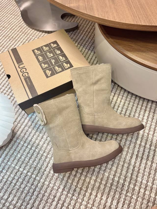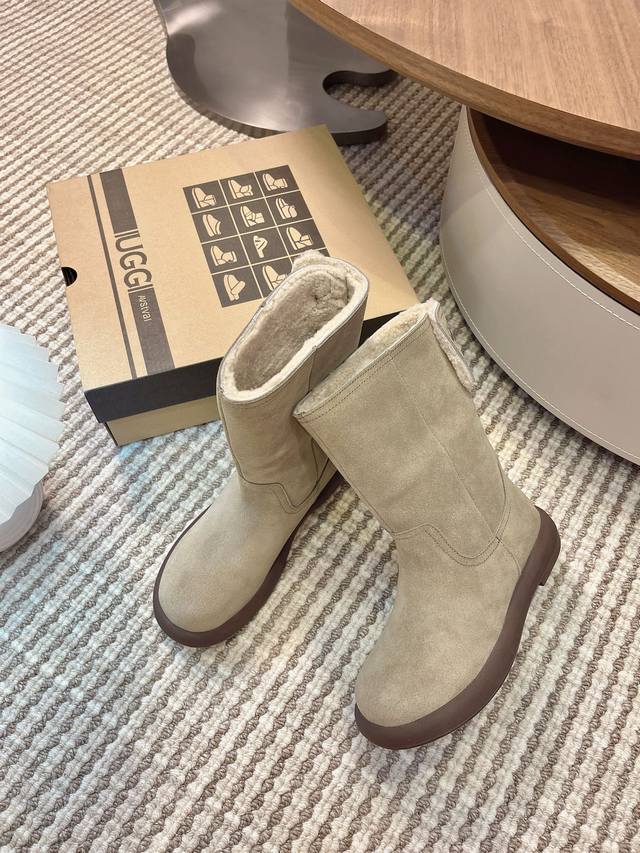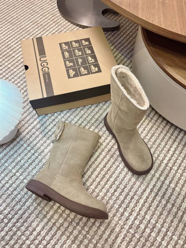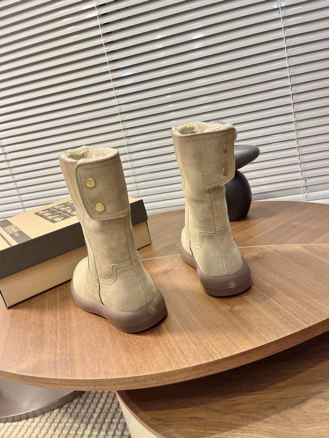 : Cowhide upper, sheepskin lining, high-top, warm and stylish