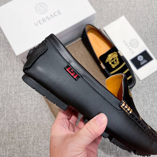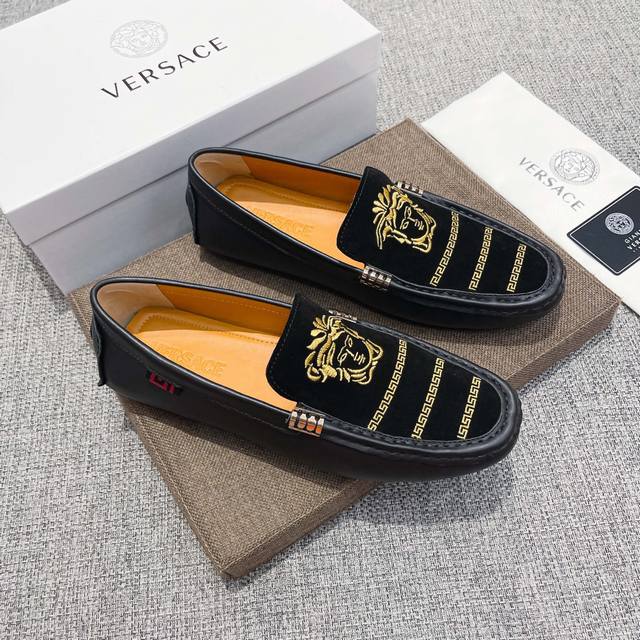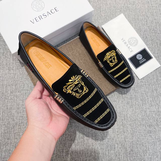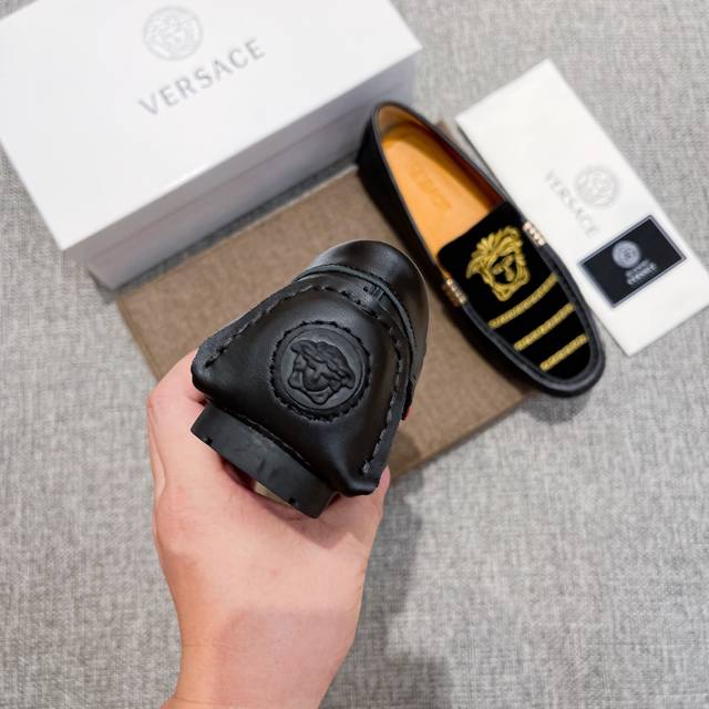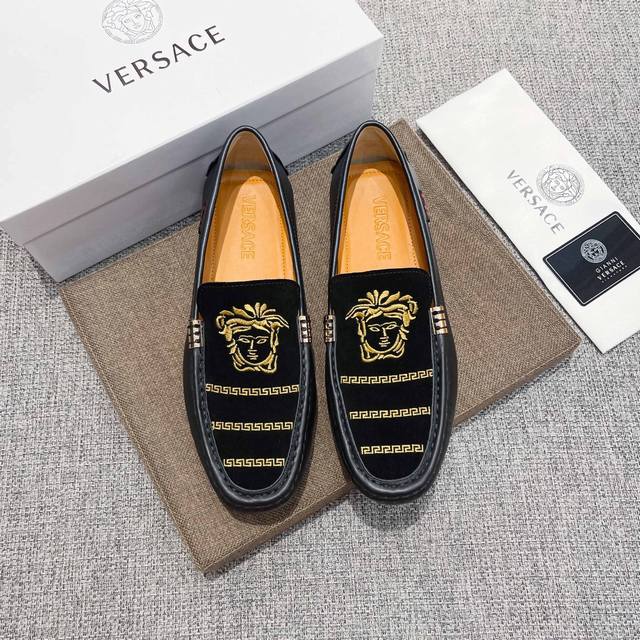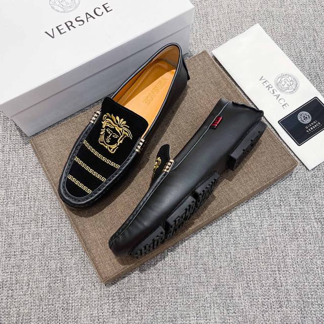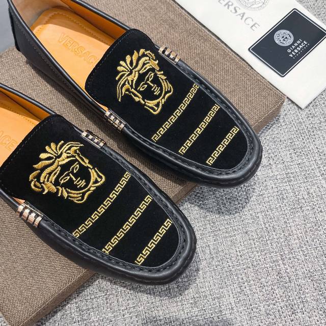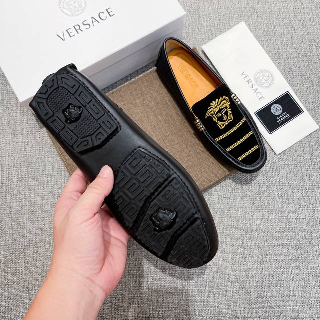 Real price, Verace, upper made of original Italian top-grain cowhide with a sexy Medusa head design, top-grain absorbent cowhide lining, original imported wear-resistant rubber sole, official website product, a must-have for men, crafted with exquisite workmanship. Comfortable to wear. Refined and elegant design, whether you are focused on work, spending leisure time with family, or experiencing a sophisticated lifestyle in the city or countryside, this series can showcase true masculine charm. [Striving] Standard sizes 37-46