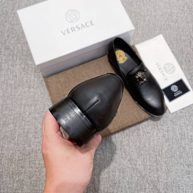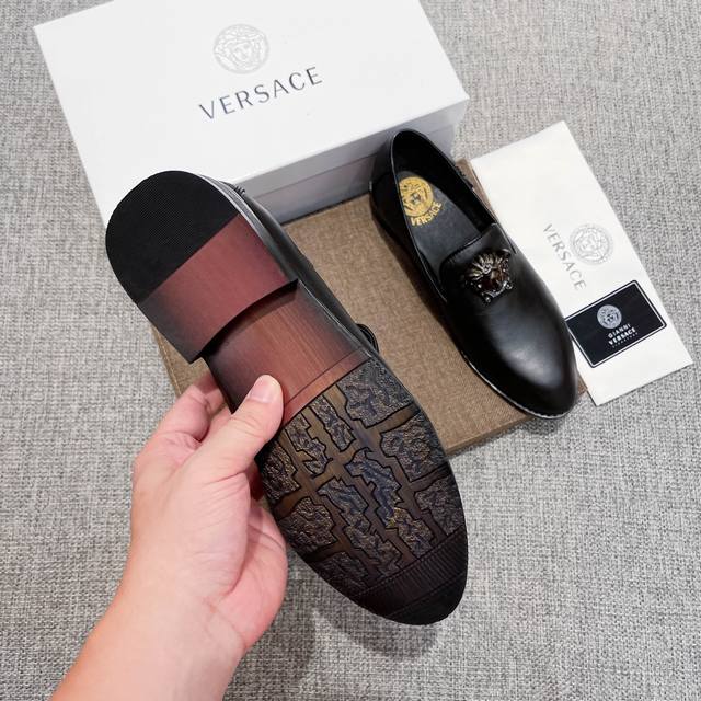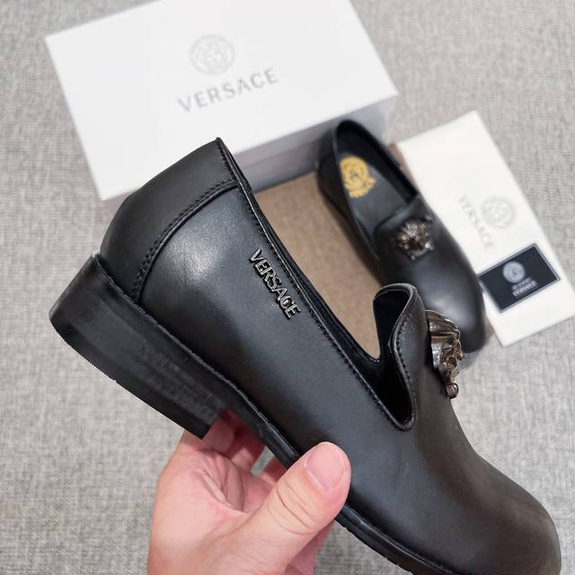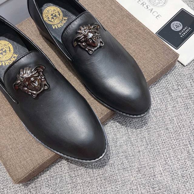 Real price. Versace official website original new high-end business casual driving slip-on leather shoes, a hot item among Italian supermodels and aristocrats, a leader in the fashion world, unparalleled, celebrity style. The upper is made of imported original cowhide + sexy Medusa head + brand metal metal on the side of the shoe, original sheepskin lining, French hall-of-fame style, priced at 25,880 Swiss Francs. This style is a runway piece from Paris Fashion Week. A brand can be deeply rooted in your heart, and a pair of shoes can also make you linger. Wearing them is not just about nobility, but also an aura. Standard size 37-46