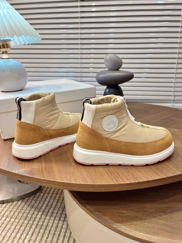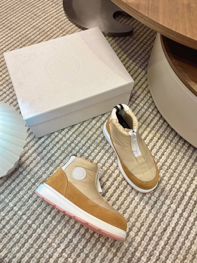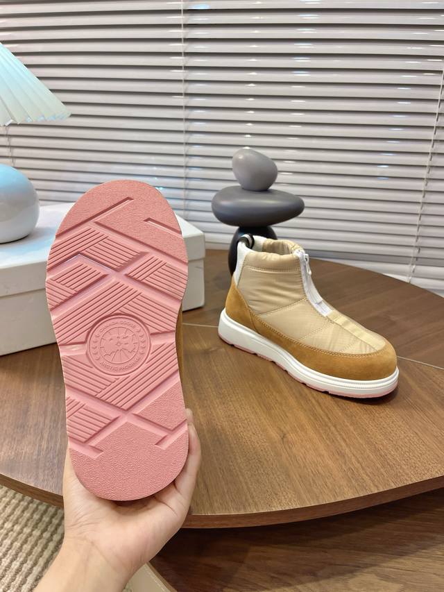 Real Price: Zhang Jingyi's same style Canada Goose winter thickened waterproof non-slip warm snow boots. These are the hottest autumn/winter choice for warmth. The down-filled upper is waterproof, windproof, and warm, while the wool lining is comfortable and breathable. It's the perfect season now, so grab them while you can! In winter, when you're running and jumping around, the most important thing is a lightweight sole! These are super lightweight, with maximum comfort. They truly feel like walking on clouds and are of reliable quality. You don't need many choices when buying shoes! Just get the best value for money. These are perfect for winter snow. Outsole: Cold-resistant PU and rubber combination non-slip outsole. Sizes 35-40.