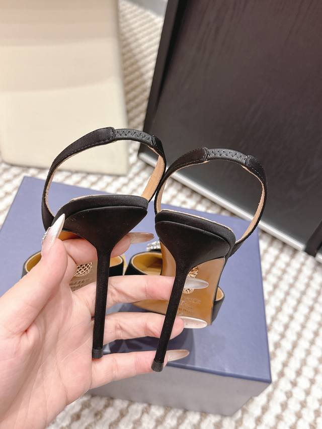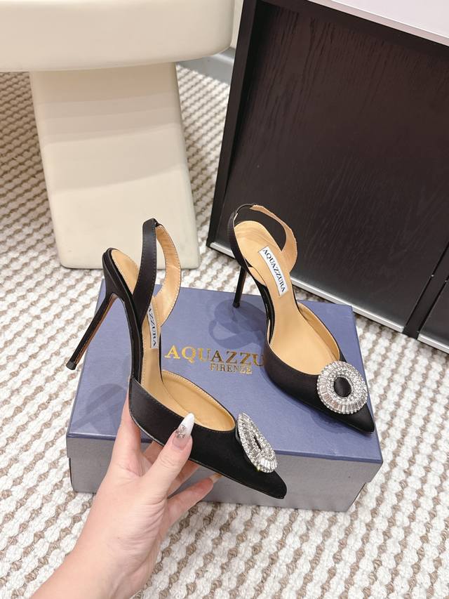 Retailer-grade Aquazzura high-heeled sandals with rhinestone buckles from the Italian luxury brand. Pointed toe design with rhinestone buckles, elegant and luxurious. The upper is mostly made of satin or patent leather, with a perfect sheen. The 10cm stiletto heel elongates the legs, suitable for formal occasions such as weddings and banquets. The soft lining ensures comfort, combining beauty and practicality. The rhinestone buckle details are eye-catching, instantly elevating your style when paired with a dress or gown. Size: 34-42 (34, 40, 41, 42 are custom-made).