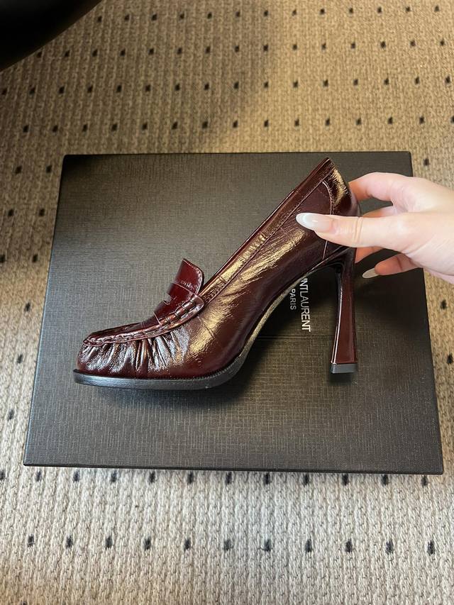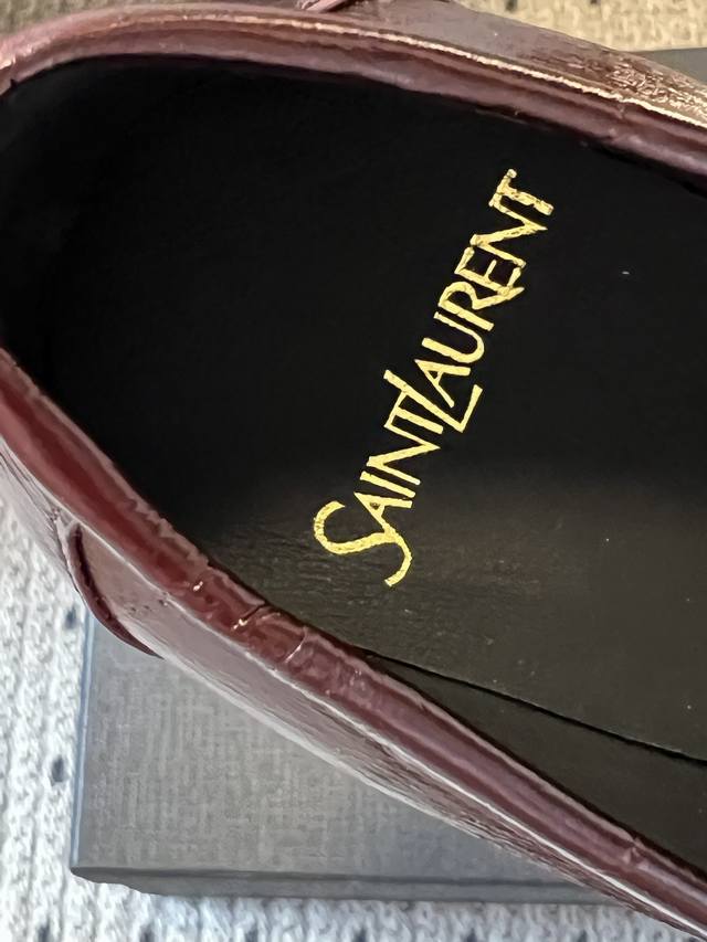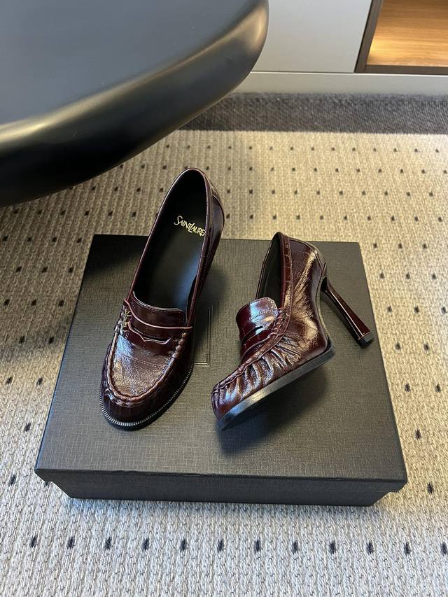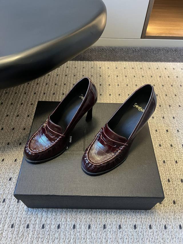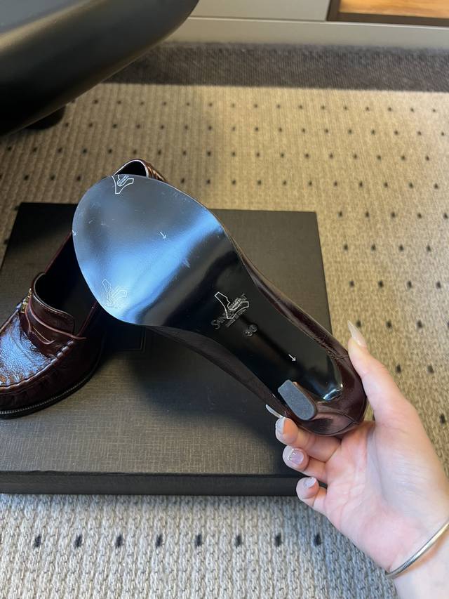 Saint Lauren*Retro French Style Stiletto Heeled Slip-on Loafers DDD These slip-on loafers feature a classic, laceless design with a touch of understated luxury and suitable for everyday wear. The shoe incorporates YSL's signature metallic logo, subtly integrated into the design to enhance brand recognition without compromising the overall minimalist aesthetic. DDD Available in patent leather, glossy metallic leather, suede, and matte leather, each material offering a unique visual and tactile experience. Colors include metallic silver, off-white, black, burgundy, and brown, ranging from cool metallic to warm earth tones and retro burgundy, catering to various occasions. DDD Upper: Cowhide Suede Ddd Lining: Sheepskin Ddd Outsole: Genuine Leather Outsole Ddd Heel Increase: 10cm Ddd Size: Sizes 35-41, sizes 40 and 41 are custom-made and non-refundable Ddd DDD