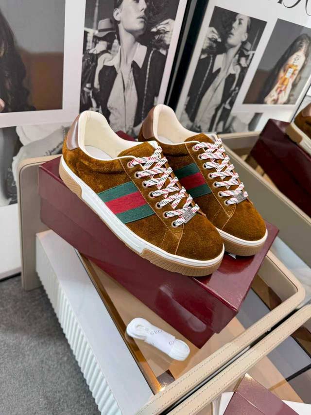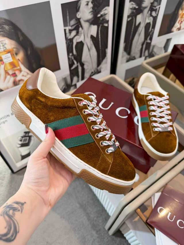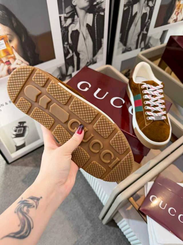 Simple yet sophisticated, a new fashion paradigm. These Gucci shoes, predominantly white, exude elegance. The iconic red and green webbing accents speak volumes, instantly showcasing the brand's charm and trendsetting attitude. The upper is made of a delicate material, offering a comfortable feel, making every step feel like walking on clouds. Exquisite details, such as the shimmering embellishments and unique metal buckles, add highlights to the overall look, subtly radiating unique brilliance. Whether paired with casual jeans for a relaxed and carefree look, or with a simple dress for a gentle and romantic feel, these shoes effortlessly become a versatile piece in your wardrobe. Choose them and embark on a journey of both style and comfort, making every outing a fashion runway. (Ddd 39-45 Ddd DDD Ddd)