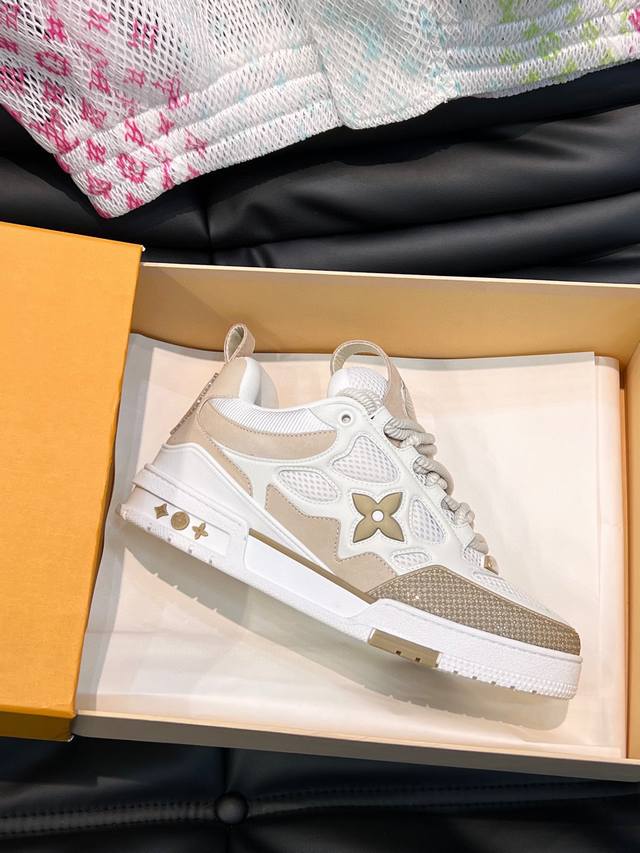 Sizes 38-45 L*Skate Sneakers - Thick-soled lace-up sneakers, made of top-grain cowhide, with contrasting rubber toe cap, thick lace-up design, large Monogram print on the side, "Lv 54" badges on the tongue and heel, Monogram floral embellishment on the rubber outsole, and a mesh lining with cotton insole for ultimate comfort. A timeless classic, superior quality, a worthy addition to any collection!