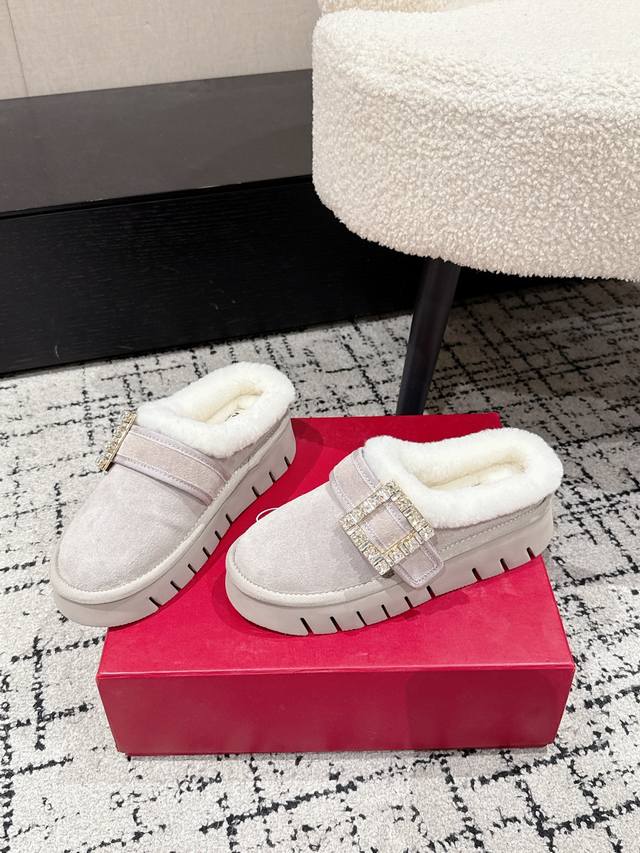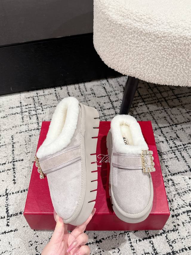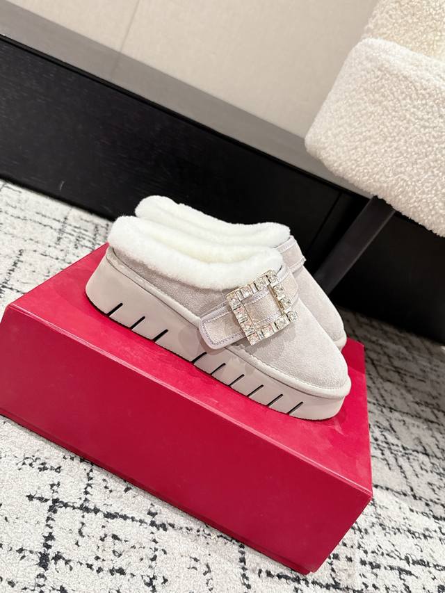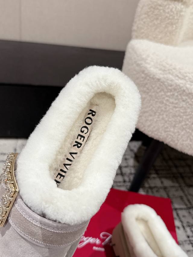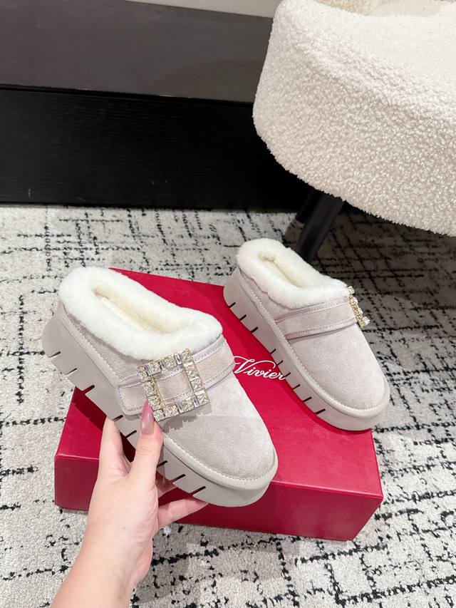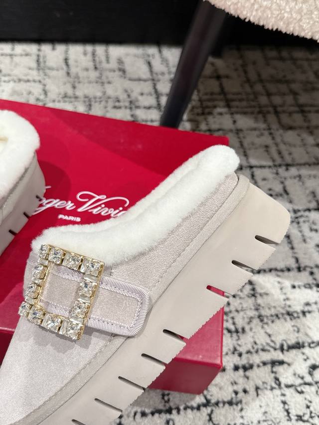 Roger Vivier Rv 25 Wf New Square Rhinestone Buckle Platform Snow Boots