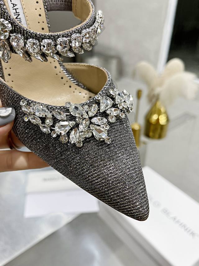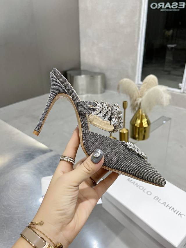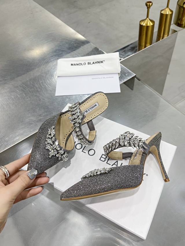 Top-tier version DDD Manolo Blahnik 90mm "Lurum" Swarovski crystal silk satin mules, high heels, top-tier replica, exquisitely crafted 1:1! Made with the finest materials! Crystal-encrusted pointed toe stiletto heel, sleek and timeless design lines and vibrant colors, an absolute must-have for any high-heel enthusiast's wardrobe! DDD Materials: Italian imported silk satin fabric, crystal-encrusted top-grade sheepskin lining, Italian genuine leather sole! DDD Sizes: 34-42 34, 40, 41, 42 Made to order, no returns or exchanges DDD Heel height: 9cm DDD Colors: Black, white, green, purple, peach, champagne, light golden yellow DDD Grit material: silver gray, dark gray DDD