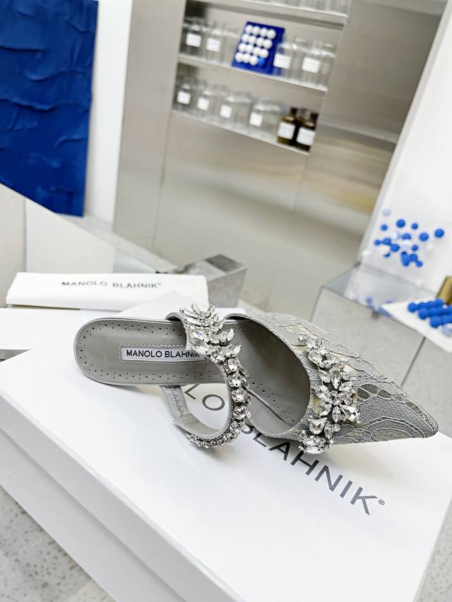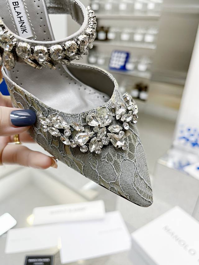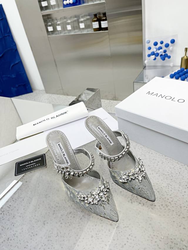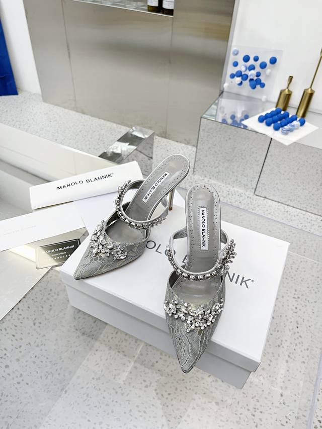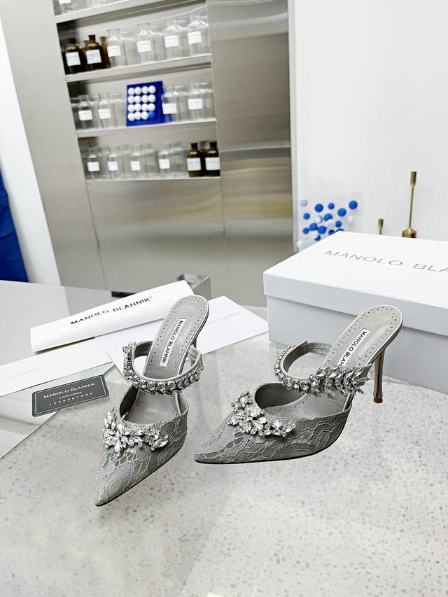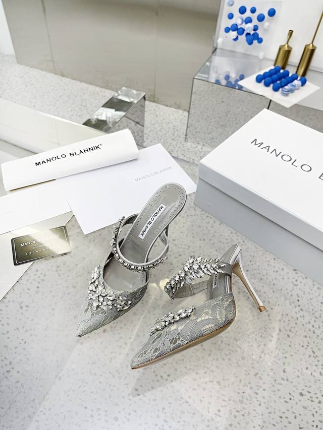 Top-tier version DDD Manolo Blahnik 90mm "Lurum" Swarovski crystal silk satin mules, high heels, top-quality replica, 1:1 perfect! Made with the finest materials! Crystal-encrusted pointed toe, stiletto heel, clean lines, classic and timeless design, and vibrant colors
