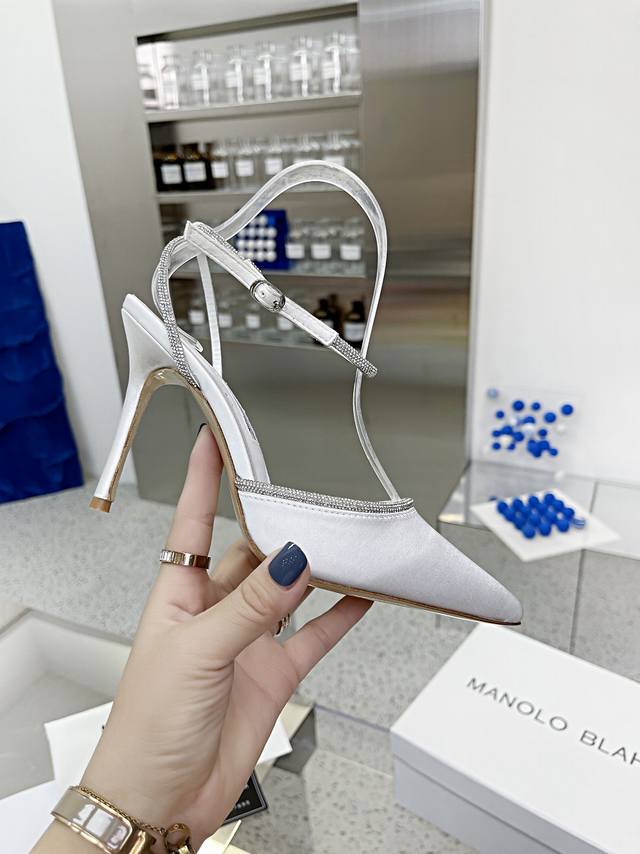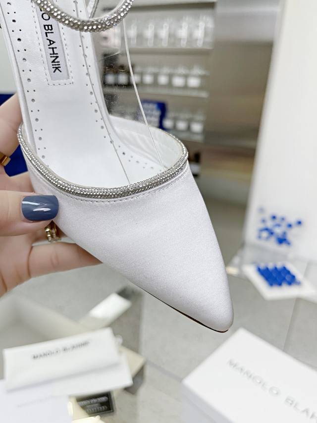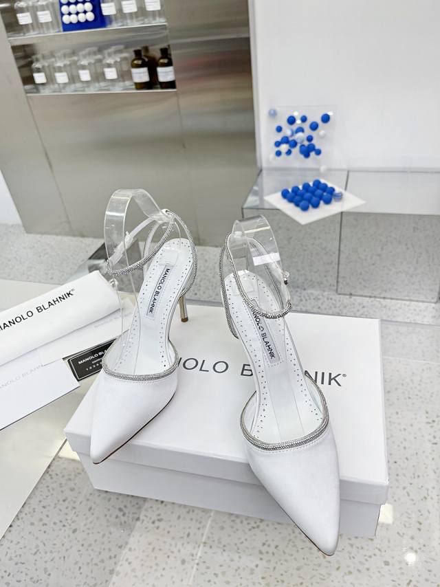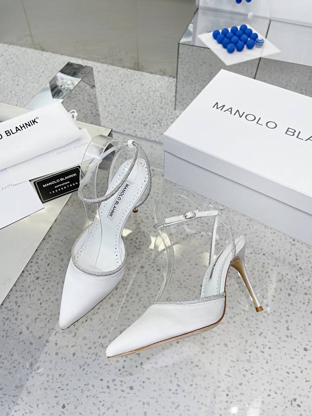 Top-tier version DDD Manolo Blahnik latest rhinestone one-strap sandals, top-tier version DDD I fell in love with these rhinestone high-heeled sandals at first sight! They make my feet look so long and especially accentuate the beautiful lines of my calves! They look great with other clothes. The most satisfying thing is that the rhinestones are so sparkly and beautiful. Looking forward to recommending them DDD "Lurum" Swarovski crystal rhinestone silk satin mules, top-tier replica, super exquisite, 1:1 zero-distance craftsmanship! Made with the best materials to create the best shoes! Sparkling crystal rhinestones, pointed toe, stiletto heel, clean, classic and timeless design lines and vibrant colors, definitely a must-have for high-heel lovers' shoe cabinets DDD Materials: Italian imported silk satin fabric, crystal rhinestone inlay, top-grade sheepskin lining, Italian genuine leather sole! DDD Sizes: 34-42 34, 40, 41, 42 are custom-made and non-refundable DDD Heel height: 9cm DDD Colors: Black, white, green DDD Full packaging DDD