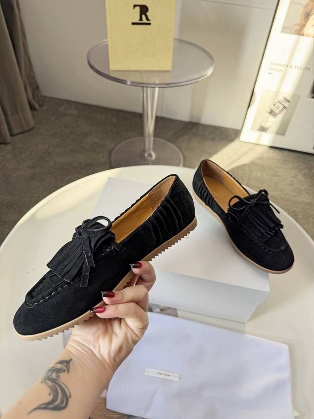 The Row Bow Tassel Slip-on Loafers Ddd I fell in love with these shoes at first sight. They look unassuming but grow on you the more you look at them. Simple yet sophisticated, with a touch of retro style, they look great with any outfit! Many online influencers are wearing them. They look amazing on! The shoes are incredibly soft and comfortable, without causing blisters. A classic and practical slip-on shoe that can also be worn as a slip-on