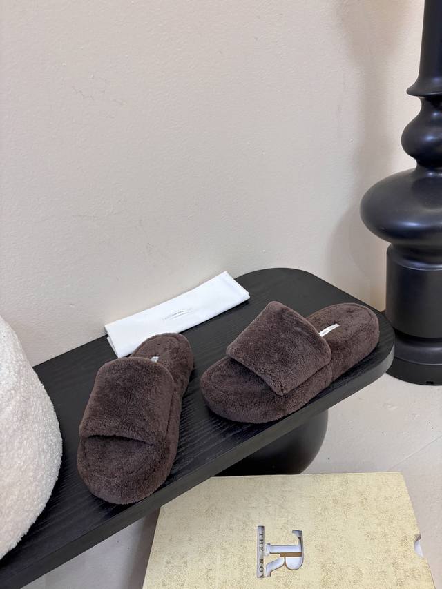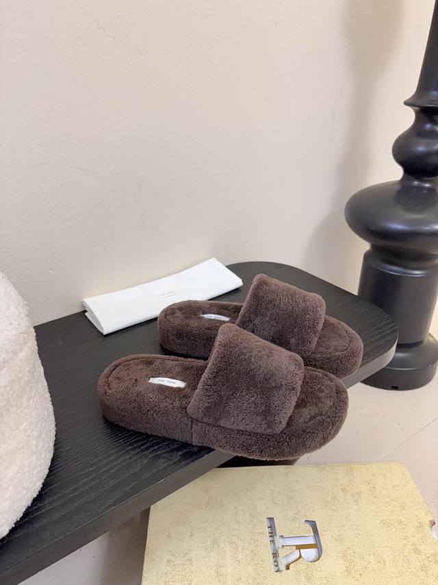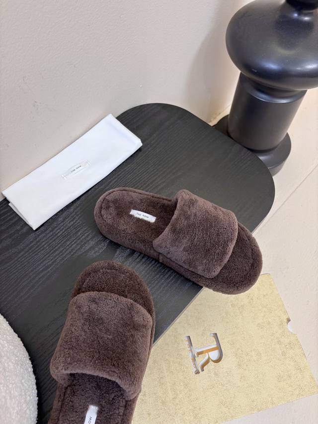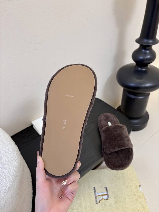 The Row's new fleece sandals. At first glance, these shoes seem unassuming, with minimal embellishment. Comfort is a must; they offer a truly comfortable, almost imperceptible feel, making them a must-have for anyone who wants to wear them. Simple and versatile! Material: Imported lamb's wool. Outsole: Original molded rubber outsole. Size: 35-39. 4041 Custom orders, no returns or exchanges.