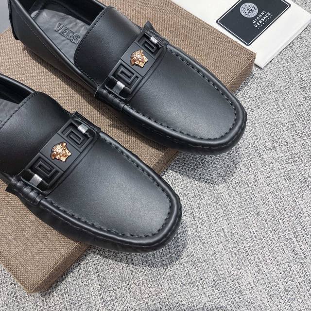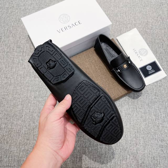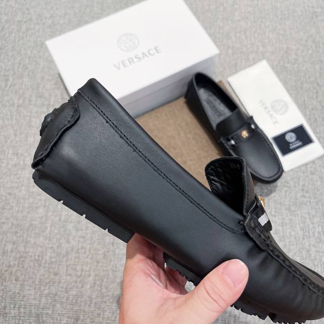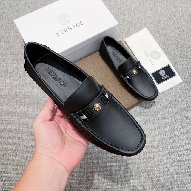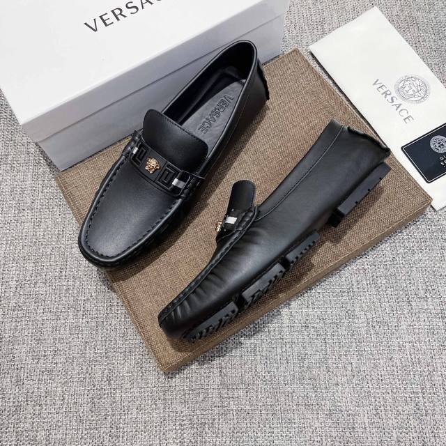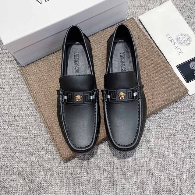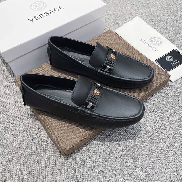 This is a high-end, best-selling Versace driving shoe from the official website. The upper is made of imported top-grain cowhide, and the lining is also made of genuine top-grain cowhide. It's luxurious and high-end, featuring an original imported wear-resistant rubber sole. A classic choice for men's elegance, this shoe is crafted with exquisite workmanship and offers comfortable wear. The sexy design of the upper perfectly showcases the brand's understated elegance and high-end style. Whether you're focused on work, spending leisure time with family , or experiencing a sophisticated lifestyle in the city or countryside, this series exudes true masculine charm. [Striving] Standard sizes 37-45