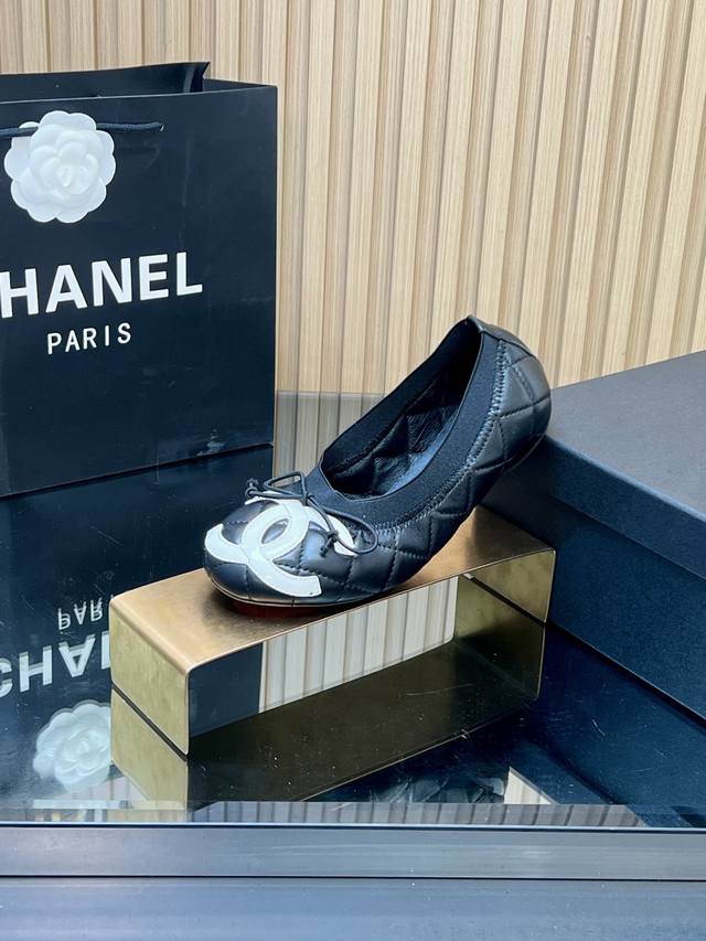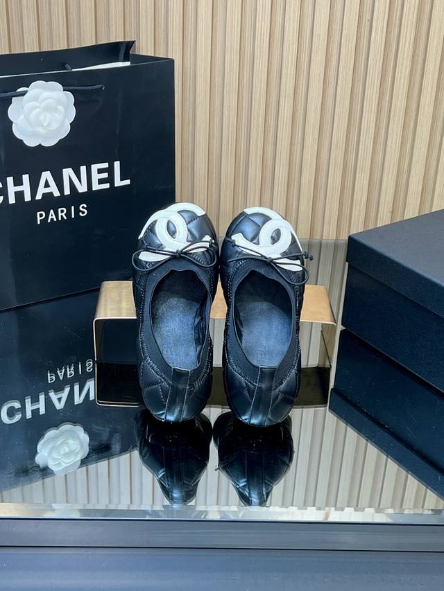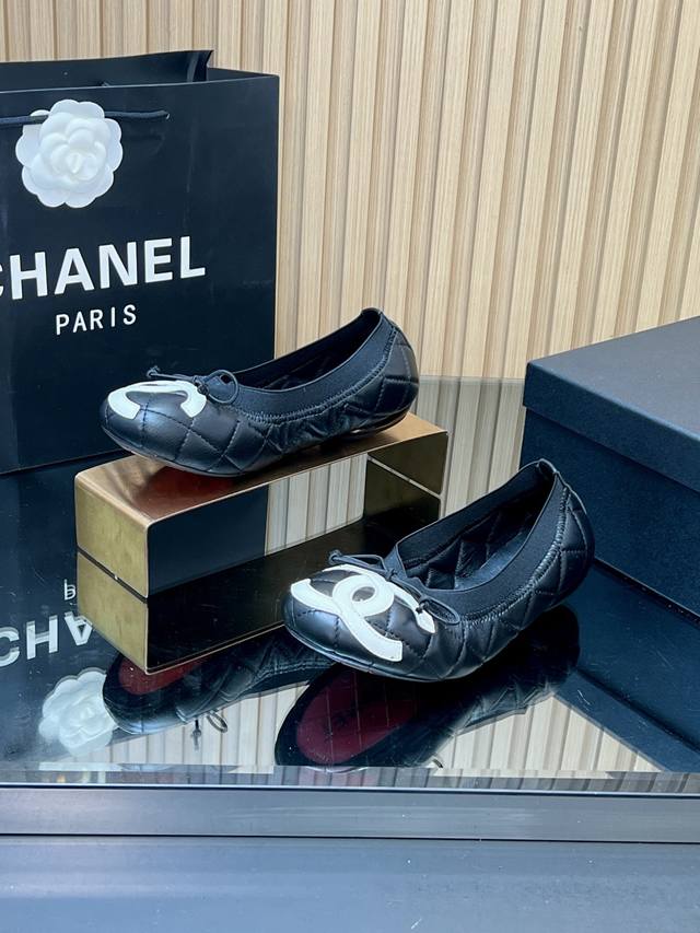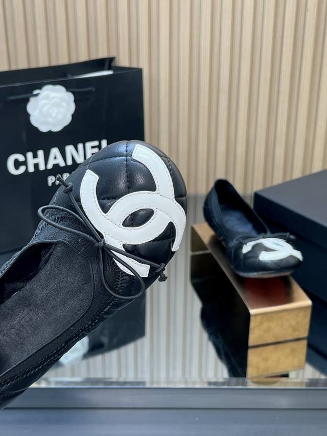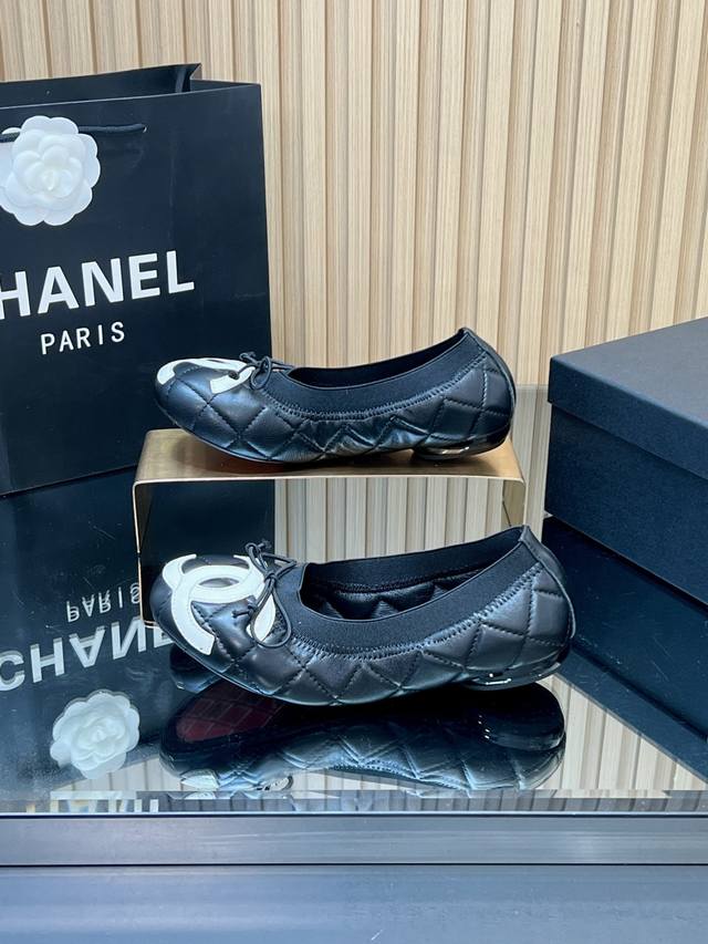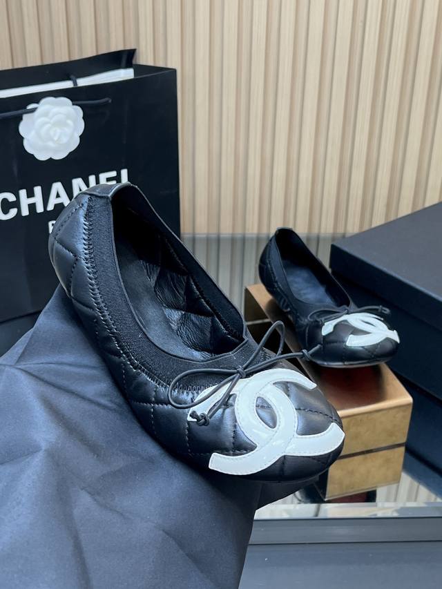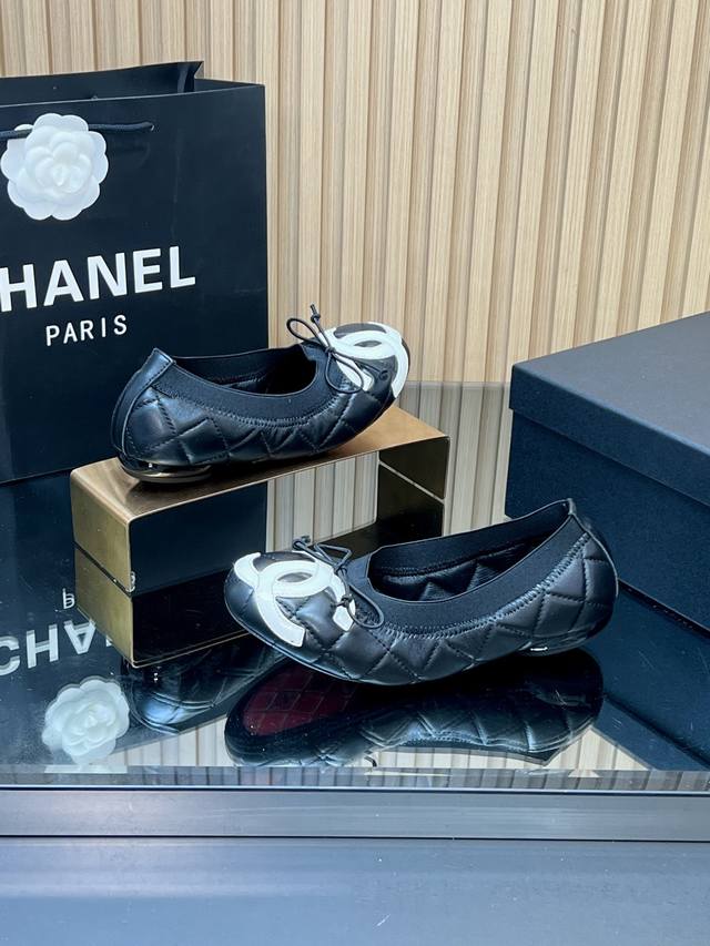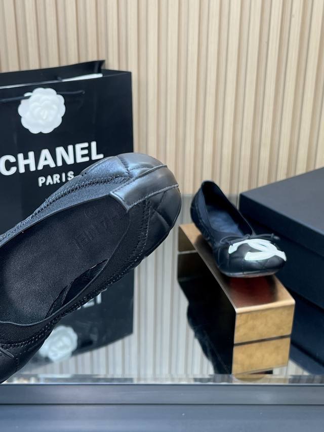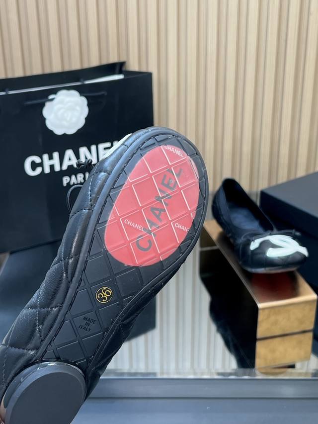 Top-tier version Ddd Chanel small pearl heel ballet flats with diamond-patterned bow DDD The upper is crafted from genuine leather, with a double C patent leather logo bow at the toe, giving it a high-end and layered feel; the heel features an oversized "pearl" design, inlaid with the iconic double C logo, creating a striking black and white color contrast. DDD Upper: Imported sheepskin Ddd Insole: Sheepskin Ddd Outsole: Original mold combination sole Ddd Size: 35-39 40.41 Custom made DDD
