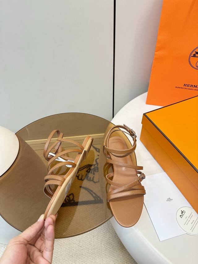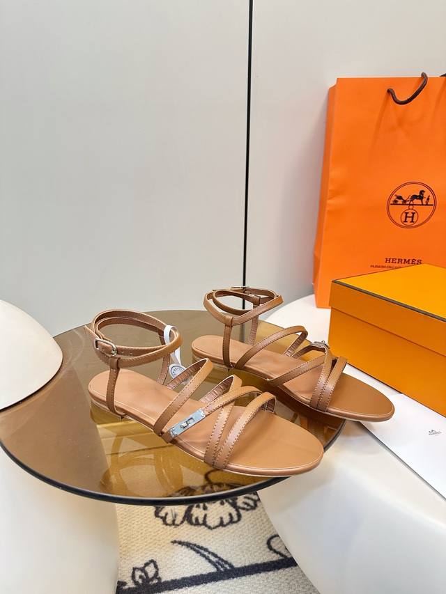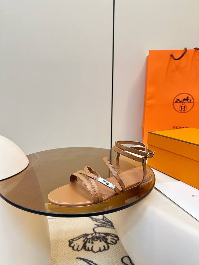 Top-tier version with airplane box. Hermes Kelly buckle fairy flat sandals. Hermes June series fairy sandals, simple and elegant, classic palladium-plated Kelly buckle + strap design, perfect details. Suitable for everyday wear or summer outings. Square toe design flatters the foot shape, multiple thin straps for added stability, white is versatile, easily paired with dresses or casual wear, a must-have item for your summer wardrobe! Calfskin leather upper, sheepskin insole, Italian genuine leather sole! Sizes 35, 42, 40, 41, 42, custom made.