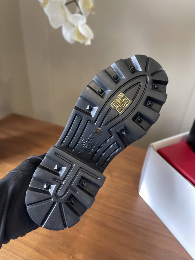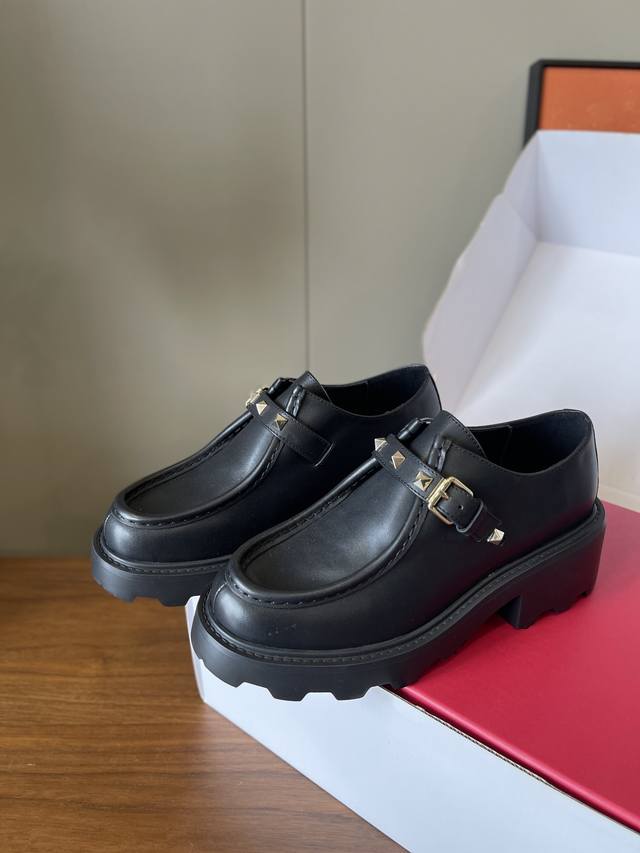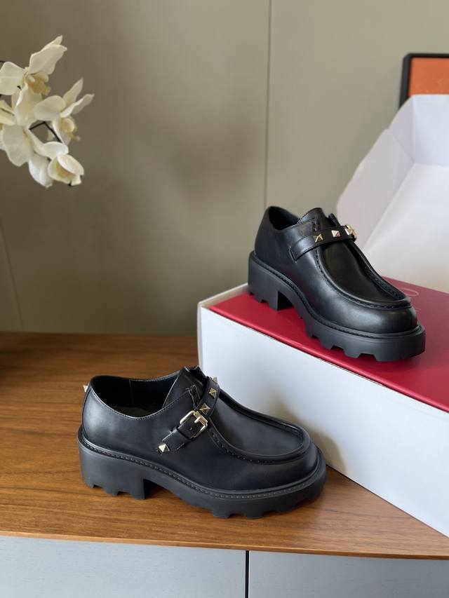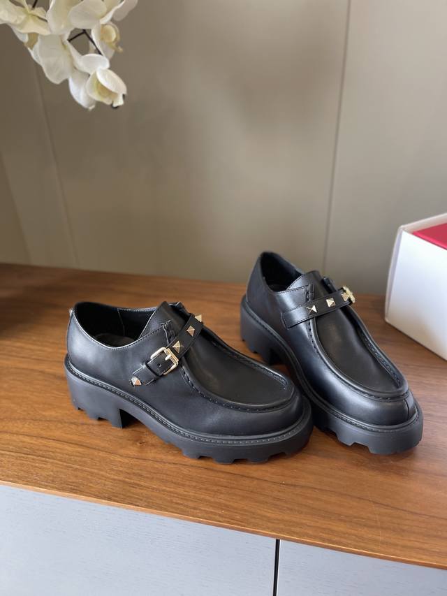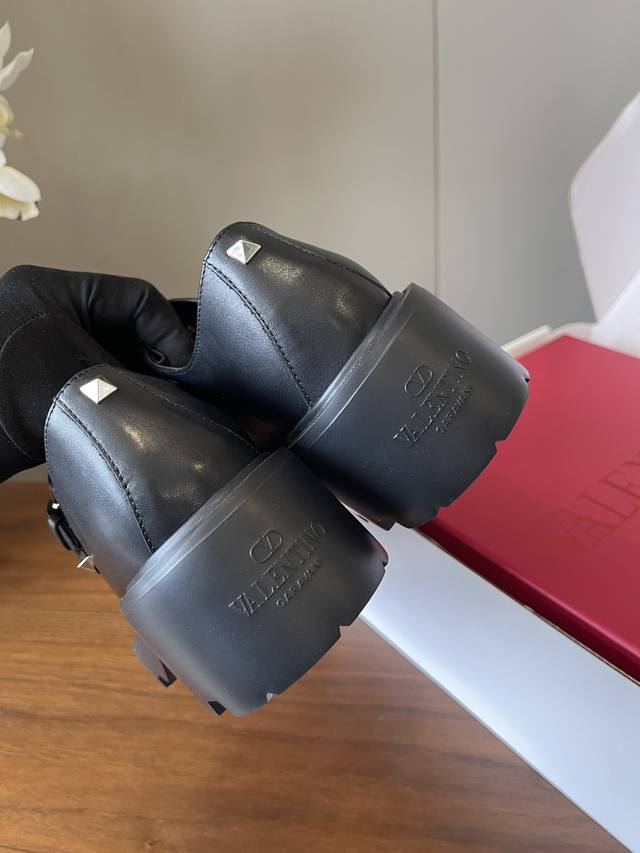 / Dongguan-made Valentino **25Fw deep-cut studded leather shoes, calfskin lining,