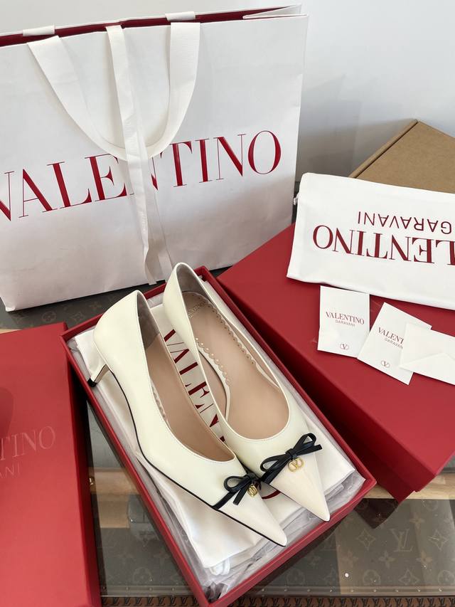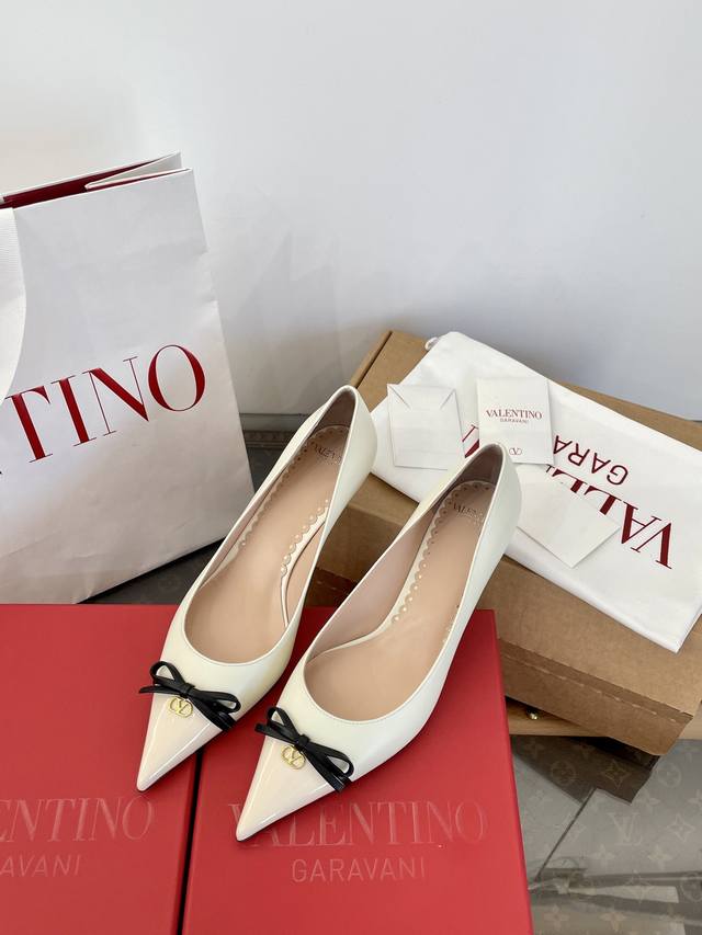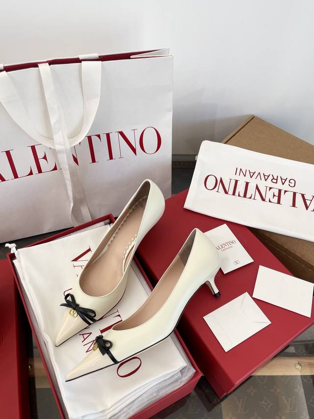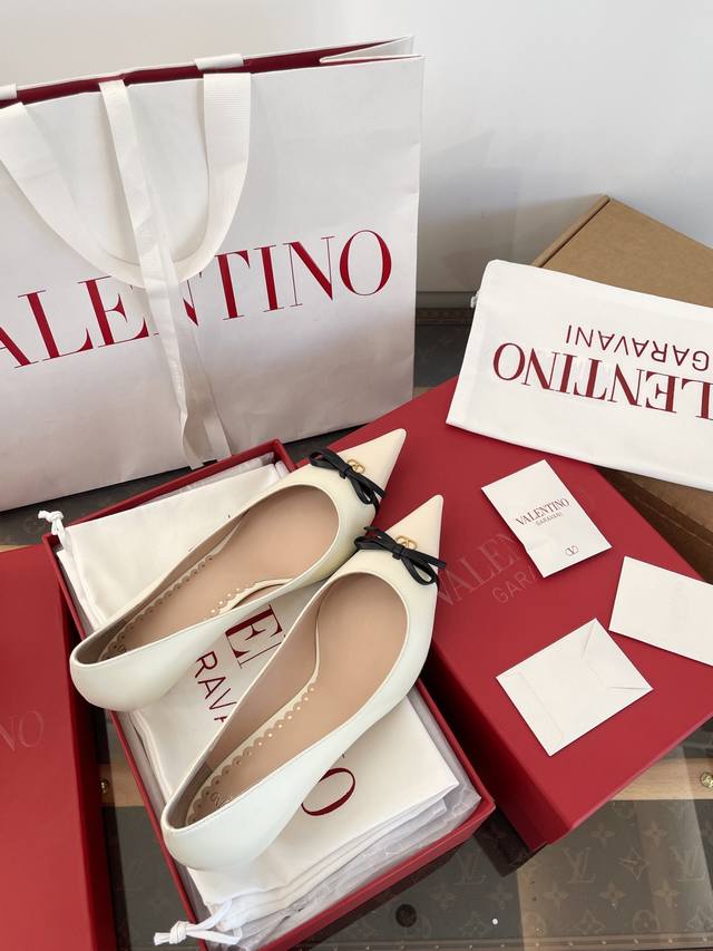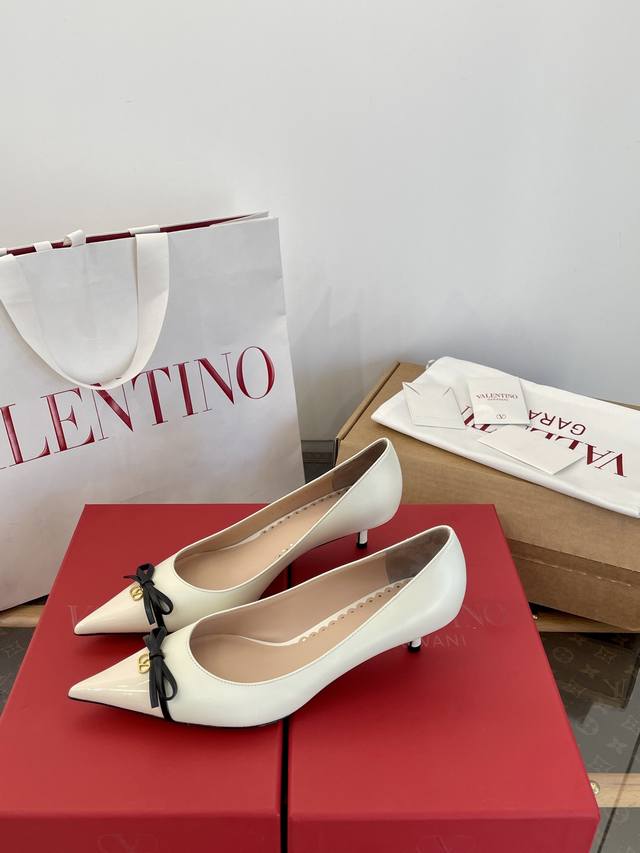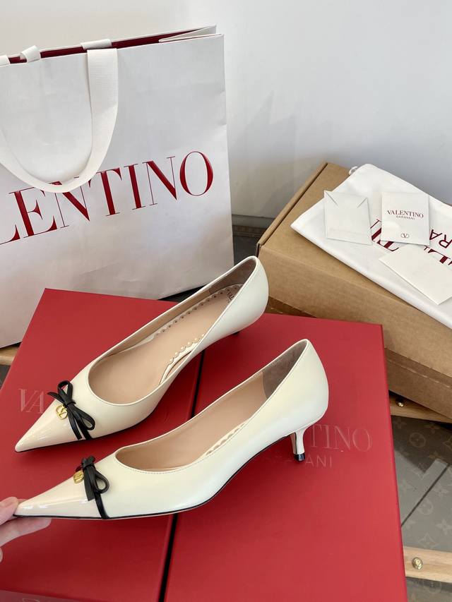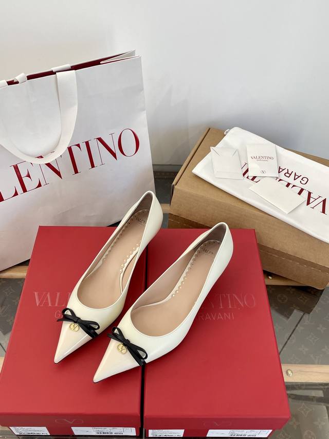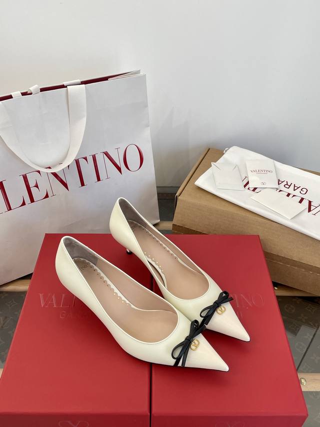/ Dongguan-made Valentino color-blocked bow pointed-toe high heels. Top-quality p
