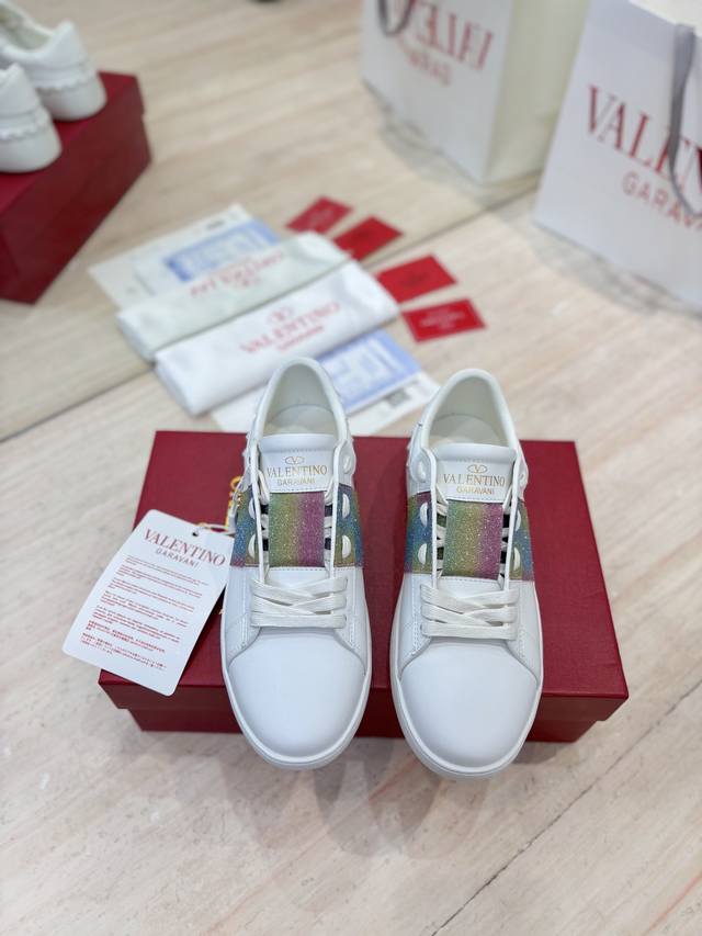 Factory direct price top-tier series DDD Valentino Garavani Open Disco studded platform casual sneakers, white sneakers DDD Original purchase, developed and manufactured. Classic Valentino studded white sneakers, hot-selling item in department stores, brand new DDD Material: Original high-end silk calfskin DDD Lining: Imported custom soft cowhide lining DDD Sole: Original molded ultra-light rubber foam material DDD Sole thickness: 3.0Cm DDD Size: Women's 35-41, Men's 38-45. Women's 41, Men's 38, 45 are custom-made and non-refundable DDD Packaging: Full set of original box and tote bag DDD