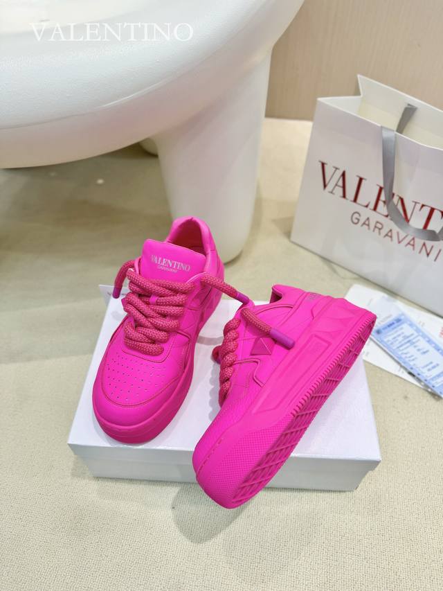 Factory direct wholesale price: Couple style DDD Top version DDD Valentino Out Stud sports casual shoes, latest style thick laces couple loaf shoes casual shoes DDD Eisa Hosk, Zhang Yixing, Guan Xiaotong and many other celebrities' same style DDD pink pp series Barbie pink was worn by Elsa Hosk with a different kind of casualness and fashion, which can be said to have blown up the fashion circle at the Anaya fashion show! DDD Upper: Top grade cowhide splicing DDD Lining: Sheepskin DDD Outsole: Original synchronized Tpr outsole 6Cm height increase DDD Sizes: Women's 35-41 Men's 38-45 DDD Packaging: Full set of gift box packaging DDD